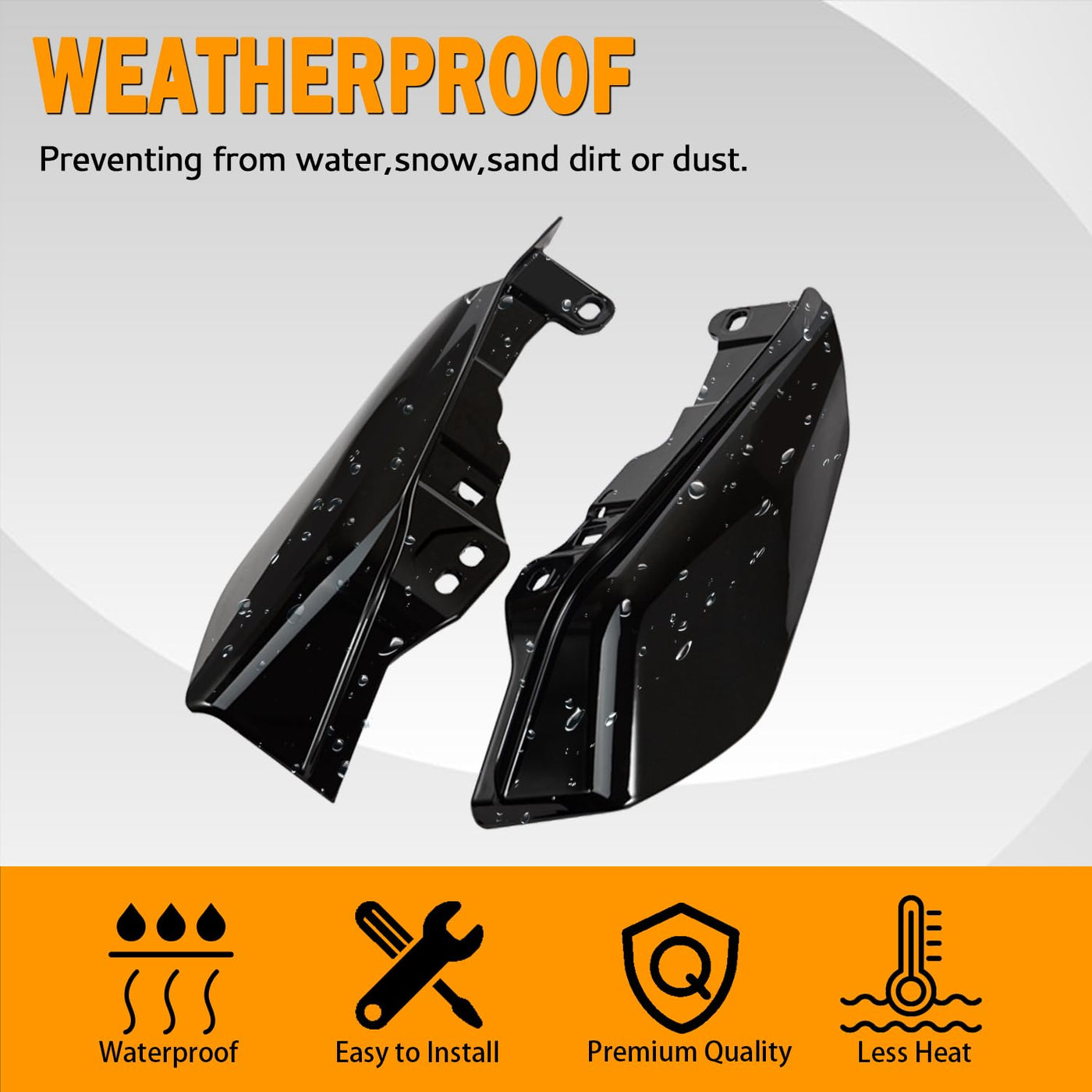?FITMENT - Aftermarket vivid black mid frame air deflectors compatible for 2009-2024 Touring and Trike models, also compatible with models equipped with CoolFlow Fan Kit P/N 26800120, 26800121 and 26800128. | ?COMFORTABLE - Attach these ABS plastic mid frame air deflectors to the frame below the seat, and deflect heat away from the rider to improve comfort on hot summer rides. | ?STYLISH - Custom design with vivid black finish,the mid frame air deflectors could add a high-end visual punch to your motorcycle. | ?PREMIUM QUALITY - Made of high quality ABS plastic,will never rust. | ?WHAT WILL YOU GET? - A pair of Mid-Frame Air Deflectors(L & R);All Necessary Mounting Hardware.Instruction NOT included.