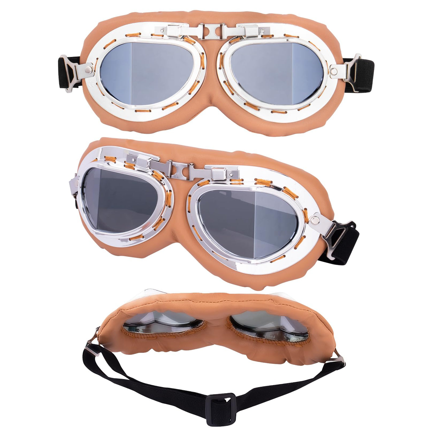 Peicees Vintage Helmet Goggles Motorcycle Goggles Bike Motorcross Pilot Goggle, Copper Silver-Silver