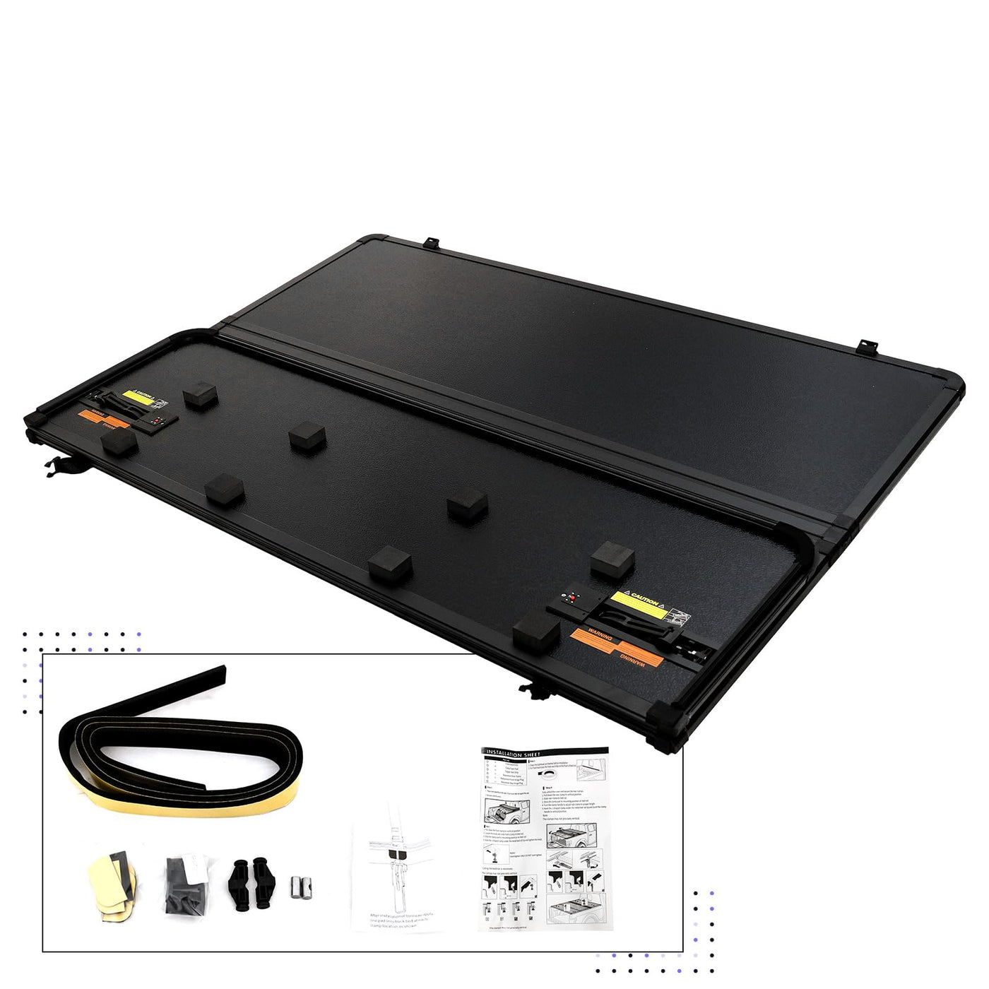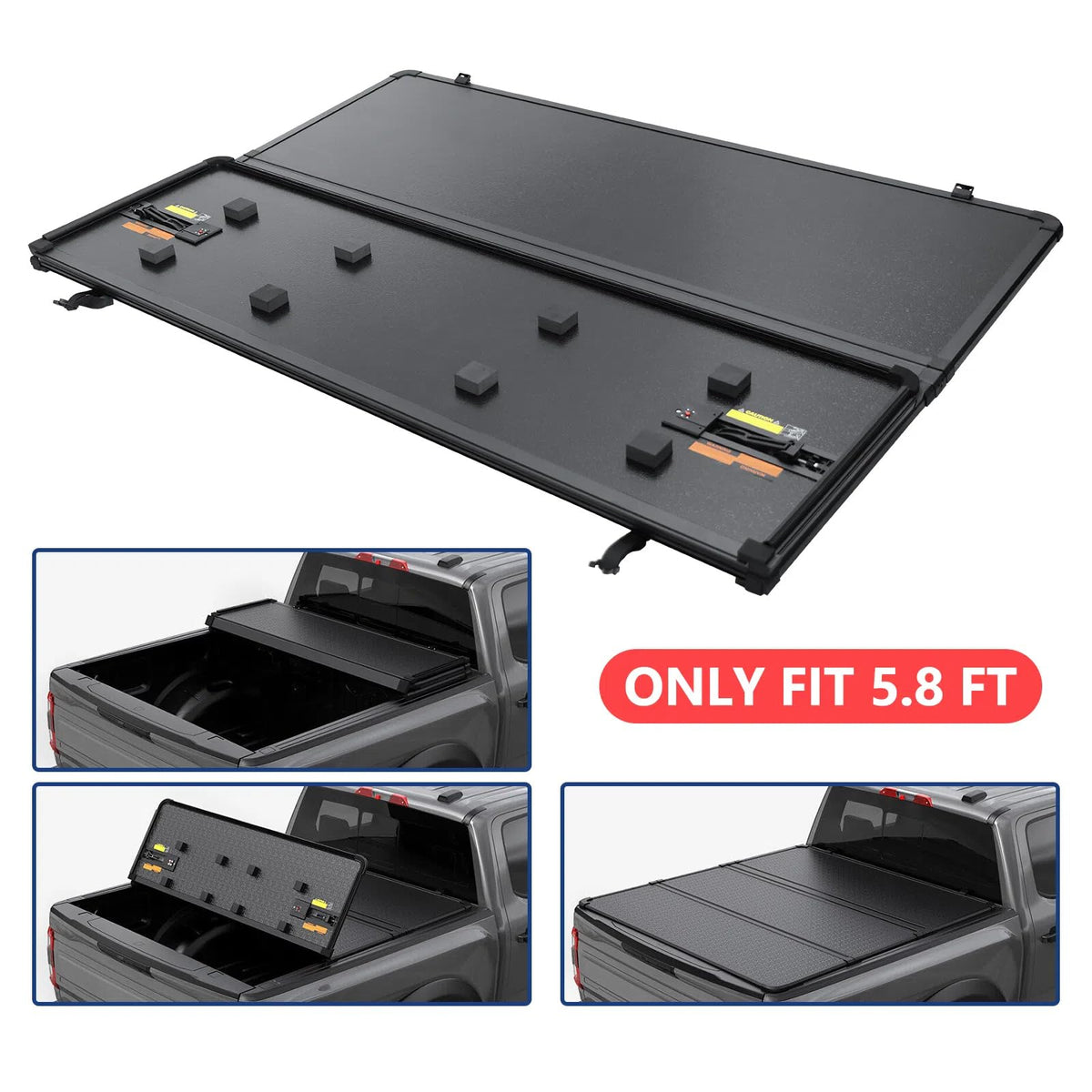 5.8FT 3 Fold Hard Truck Bed Tonneau Cover For 2019-2025 Silverado Sierra 1500 Feature: 1.Color: Black 2.Type: Hard Tri-fold Tonneau Cover 3.Fitment Type: Performance/Custom 4.Material: Aluminum, Honeycomb Aluminum 5.Placement on Vehicle: Upper 6.Features: Tri-fold 7.Body Type: 5.8ft 8.Style: Hard Tri-Fold 9.Maximum Weight Capacity: 400LB Fits: for 2019-2025 Chevrolet Silverado 1500 for 2019-2025 GMC Sierra 1500 with 5.8ft bed