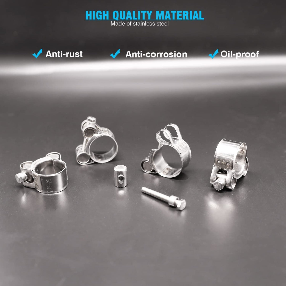 Q: How does the design of these clamps protect the hoses?A: The clamps feature a unique folding turn edging process that prevents sharp edges from cutting into the pipeline, ensuring better protection for your tubes during use.