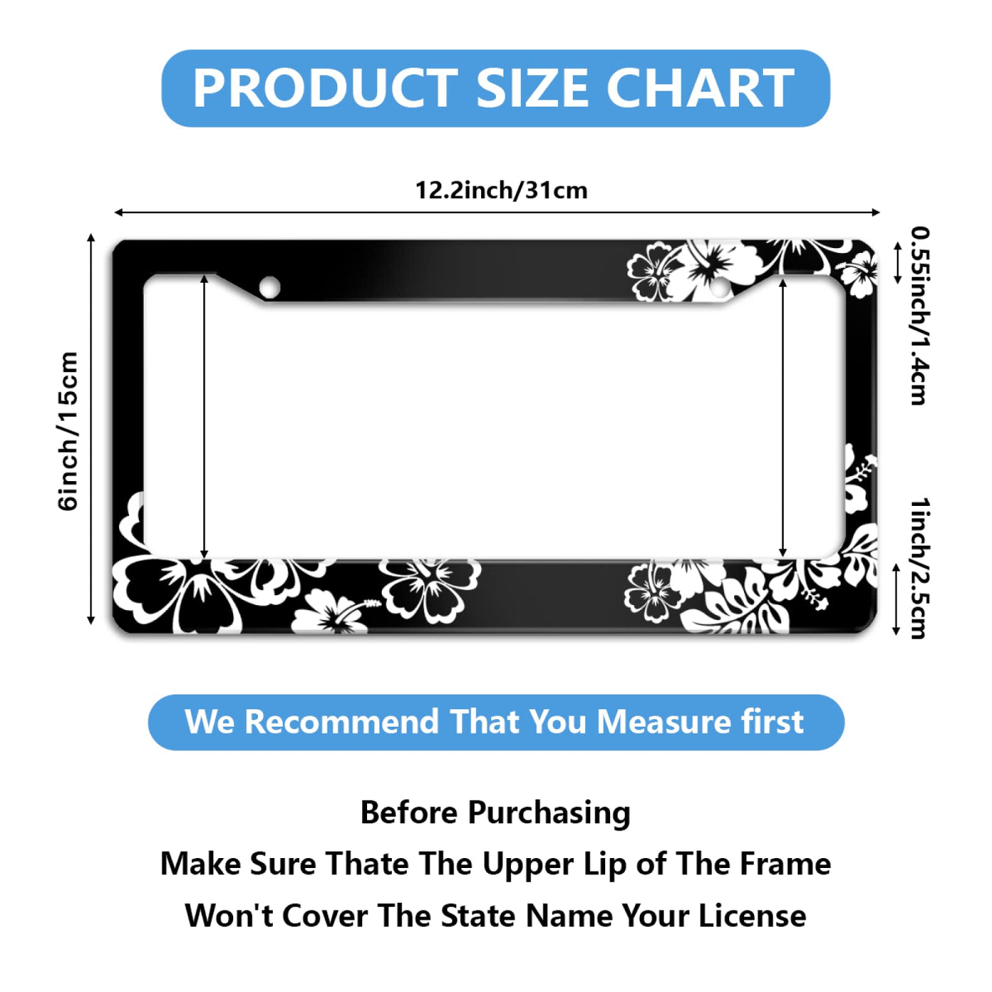 Welcome to the shop! Start your personalised car journey! Shiny license plate frame, stylish design, make your car more attractive and recognizable, make your car, more beautiful and unique! Personalised license plate frame, durable stable , to create a lasting frame. Size: our license plate frames measure 12.2 x 6.3 inches and fit most standard US and Canadian license plates, perfectly matching your car's number plate accessories. Product includes accessories: 2 screws,2 screw caps,2 washers.