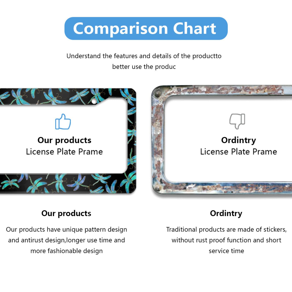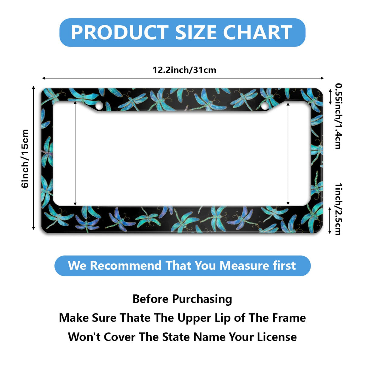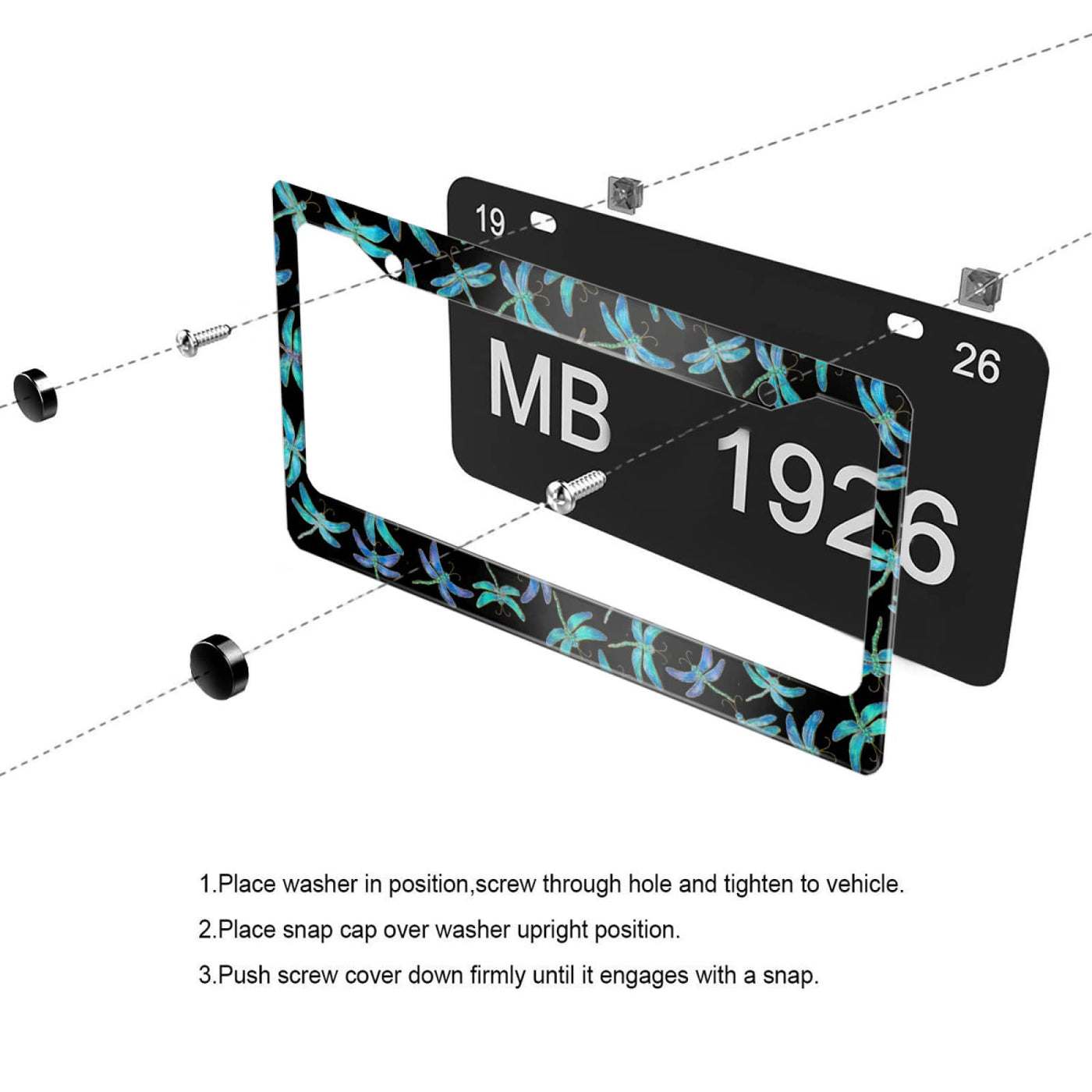 Personalized License Plate Frame Stainless Steel Beautiful Dragonfly Insects Flying Car License Plate Accessory Decorative 2 Hol