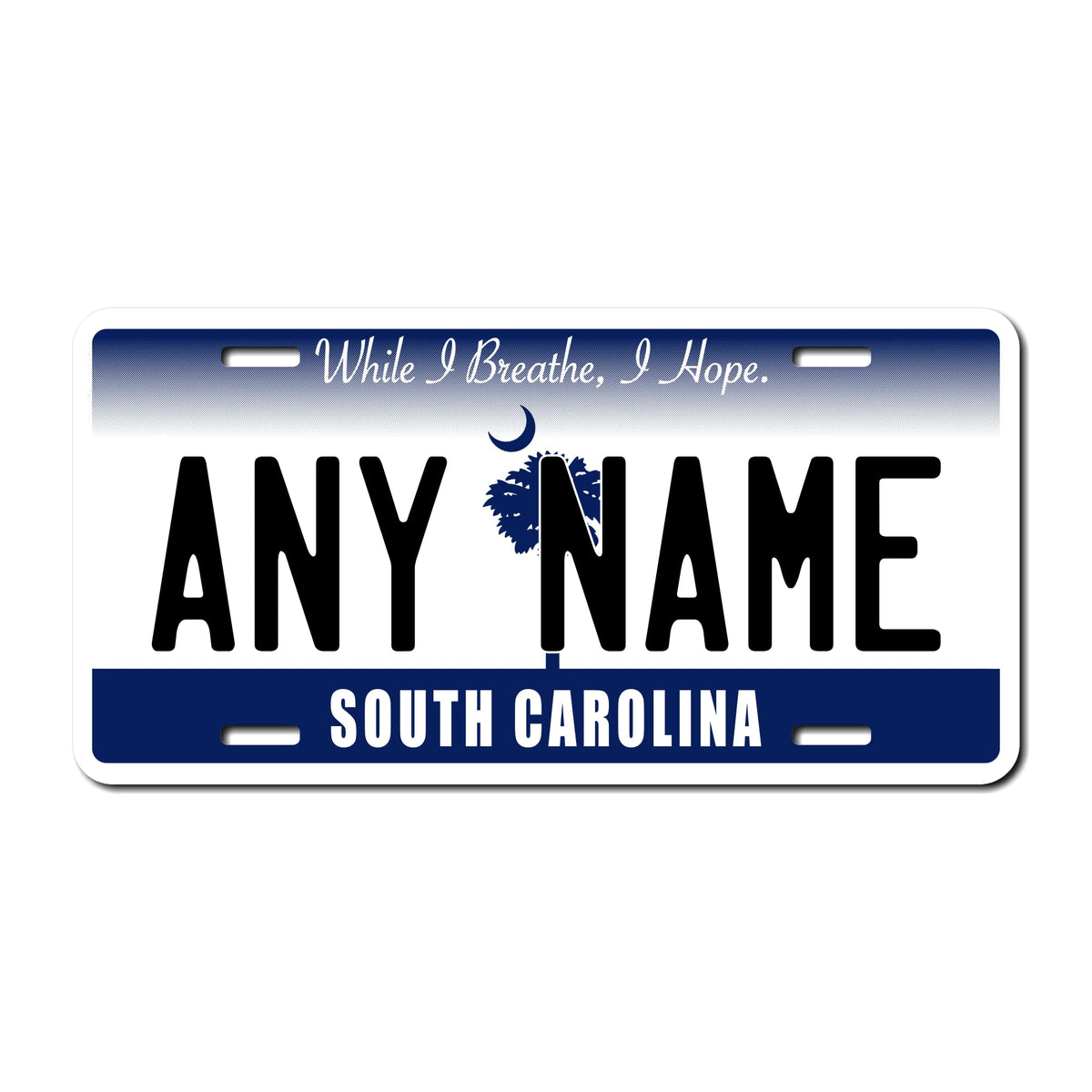 Personalized South Carolina License Plate 6 '' X 12 '' (inches) Aluminum. Add Your Name, Text or Numbers.Full Size Novelty Plate - Fits Car and Truck License Plate Holders VER.4