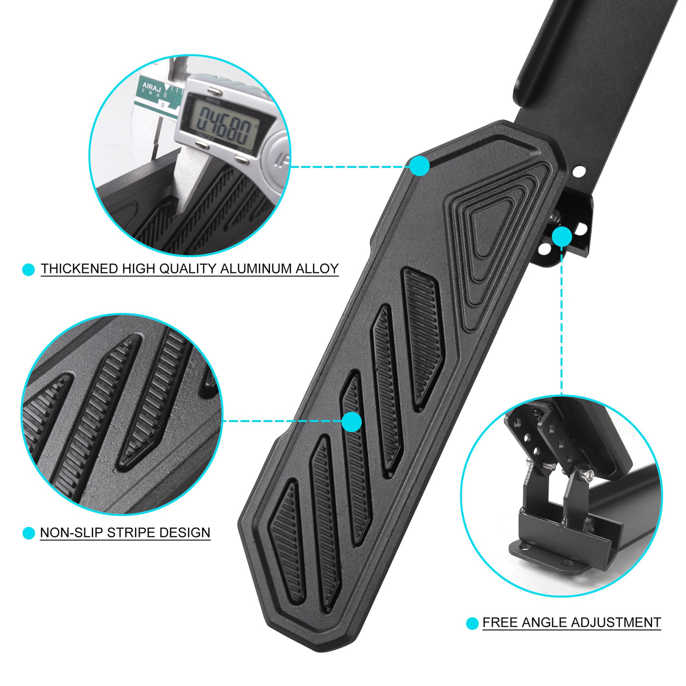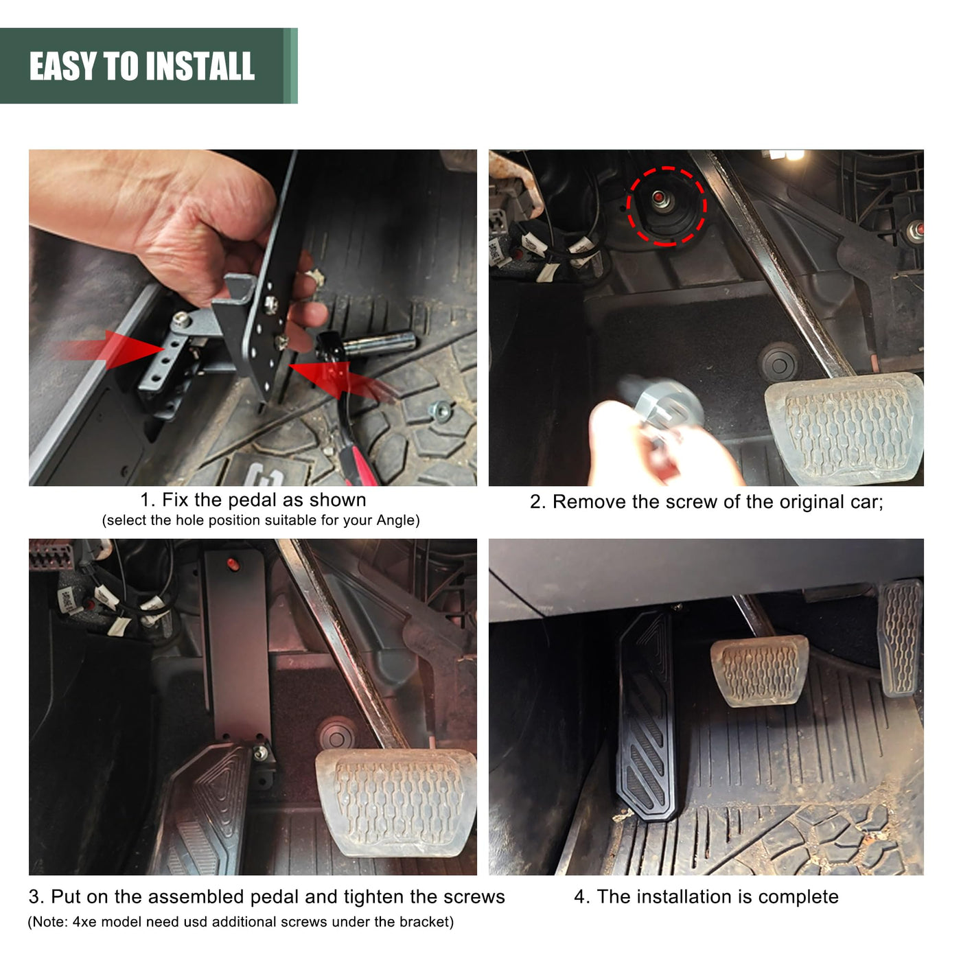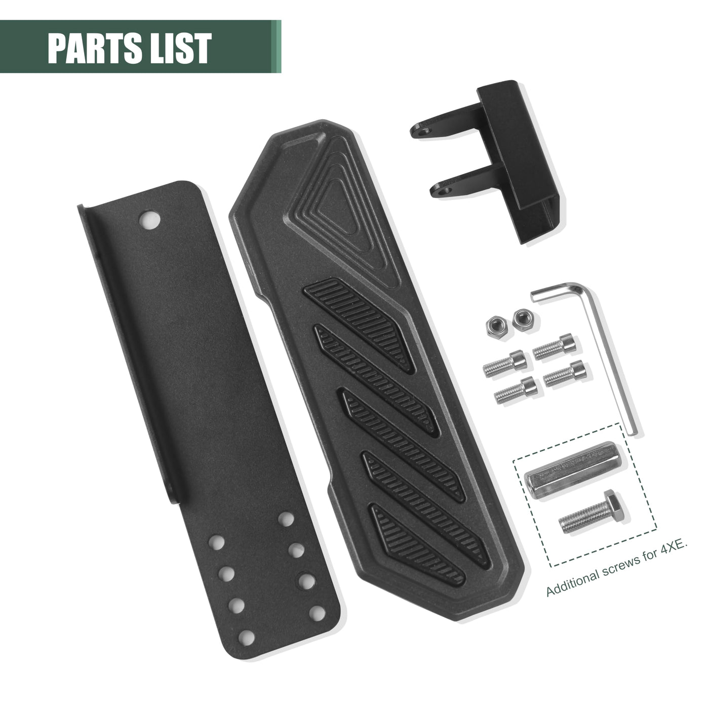 ??HIGH QUALITY Made of high quality aluminum alloy, the surface is protected by metal coating to prevent rapid corrosion and rust, the high thickness is not easy to bend, superior performance, beautiful and durable. ??UNIQUE DESIGN Our dead pedal is fixed with screws and the angle can be adjusted freely, making it suitable for individuals of various heights and reducing left leg soreness when traveling long distances.The upgraded thickness of the left foot rest is not easy to bend so you can rest assured to use it, The stripe design of the dead pedal increases the coefficient of friction between the sole and the pedal, which can firmly grasp the sole, ensure the safety of driving and prevent accidents. ??EASY INSTALLATION No drilling or modifications required. Installation only takes a few minutes. it can be adjusted to 4 different slopes for maximum comfort, The 4XE model requires the use of 4XE specific extension screws. ??APPLICATION Compatible with 2018 2019 2020 2021 2022 2023 2024 Jeep Wrangler JL JLU 4XE & Jeep Gladiator JT, Please check the description to confirm the compatibility before purchase. Thank you! ??PACKAGE Include 1 set Left Foot Rest Pedal(with necessary screws) & 1 pcs L-shape wrench & 4EX special screws. ??SERVICE 100% satisfaction guarantee, If you have any issues with this product, simply contact customer service for troubleshooting help, parts, replacement, or refund. Our aim is to make you satisfy the parts and the service we provide for you.
