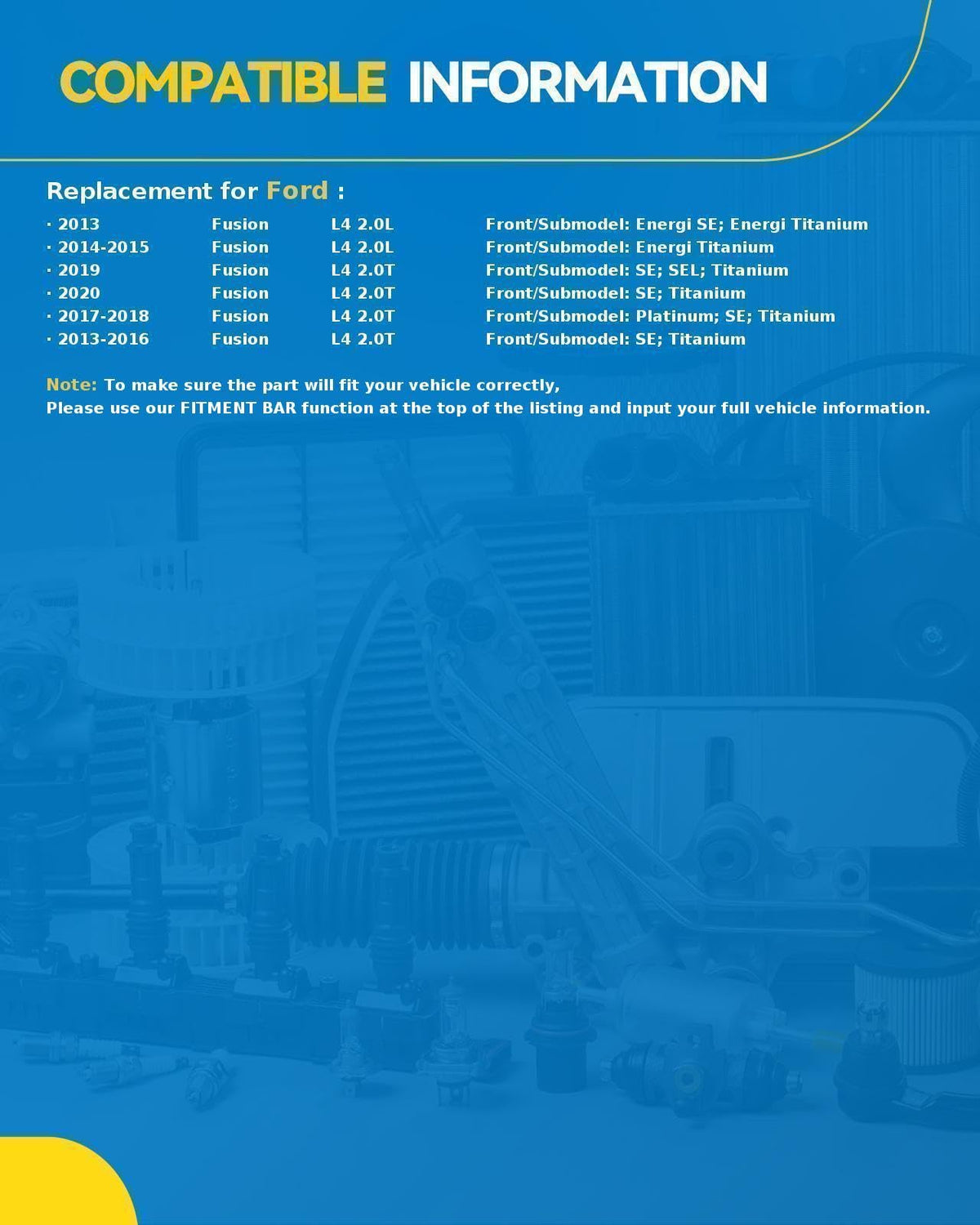 Struts Fitment: PHILTOP Complete Struts Replacement for Fusion 2013-2020 2.0L. Please Comfirm our products are compatible with your car. Manufacturer Part Number: 172638*2 | Improved Handling: Shock struts help improve the handling of a vehicle by providing better stability and reducing body roll. This can make the vehicle more responsive and easier to control, especially during sudden maneuvers or when driving on uneven terrain. | OE-Quality, Vehicle-Specific Design: Application specific coil spring, mount and strut feature an OE-style design to ensure an optimized ride and handling experience unique to each vehicle profile. | Recovery Performance Of 100%: Struts that are worn out add 20% to halting distance. After changing the PHILTOP struts component, reduce the stopping distance and increase the safety distance. Boost your driving confidence while reducing halting distance and increasing steering speed. | Increased Safety: Shock struts help improve safety by providing better traction and reducing the risk of skidding or losing control during sudden braking or acceleration. They also help reduce the wear and tear on other suspension components, which can lead to a safer and more reliable vehicle overall.