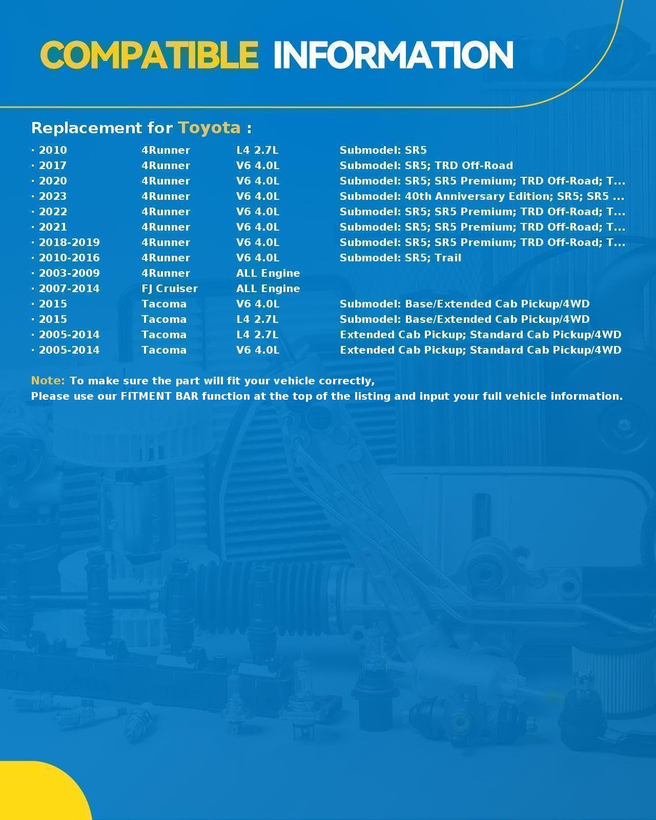 Struts Fitment: Philtop Complete Struts Replacement For 4Runner 2003-2020, Fj Cruiser 2007-2014, Tacoma 2005-2015 Manufacturer Part Number: 171371L 171371R. Please Comfirm Our Products Are Compatible With Your Car | Improved Handling: Shock Struts Help Improve The Handling Of A Vehicle By Providing Better Stability And Reducing Body Roll. This Can Make The Vehicle More Responsive And Easier To Control, Especially During Sudden Maneuvers Or When Driving On Uneven Terrain. | Oe-Quality, Vehicle-Specific Design: Application Specific Coil Spring, Mount And Strut Feature An Oe-Style Design To Ensure An Optimized Ride And Handling Experience Unique To Each Vehicle Profile. #Oe# 171371L, 171371R, 11563, 1345566L, 2701480176, 501713529L, 92140108, G57133, Ls5390411L, Sr4120, Sr4131, Sr4134, Sr4464, Sr4471, Sr4529, Srg4131, St8608L, 11564, 1345566R, 2701480177, 92140107, G57134, Ls5390411R, Sr4119, Sr4130, Sr4133, Sr4463K, Sr4463, Sr4470, Sr4528, Srg4130, St8608R | Recovery Performance Of 100%: Struts That Are Worn Out Add 20% To Halting Distance. After Changing The Philtop Struts Component, Reduce The Stopping Distance And Increase The Safety Distance. Boost Your Driving Confidence While Reducing Halting Distance And Increasing Steering Speed. | Increased Safety: Shock Struts Help Improve Safety By Providing Better Traction And Reducing The Risk Of Skidding Or Losing Control During Sudden Braking Or Acceleration. They Also Help Reduce The Wear And Tear On Other Suspension Components, Which Can Lead To A Safer And More Reliable Vehicle Overall.