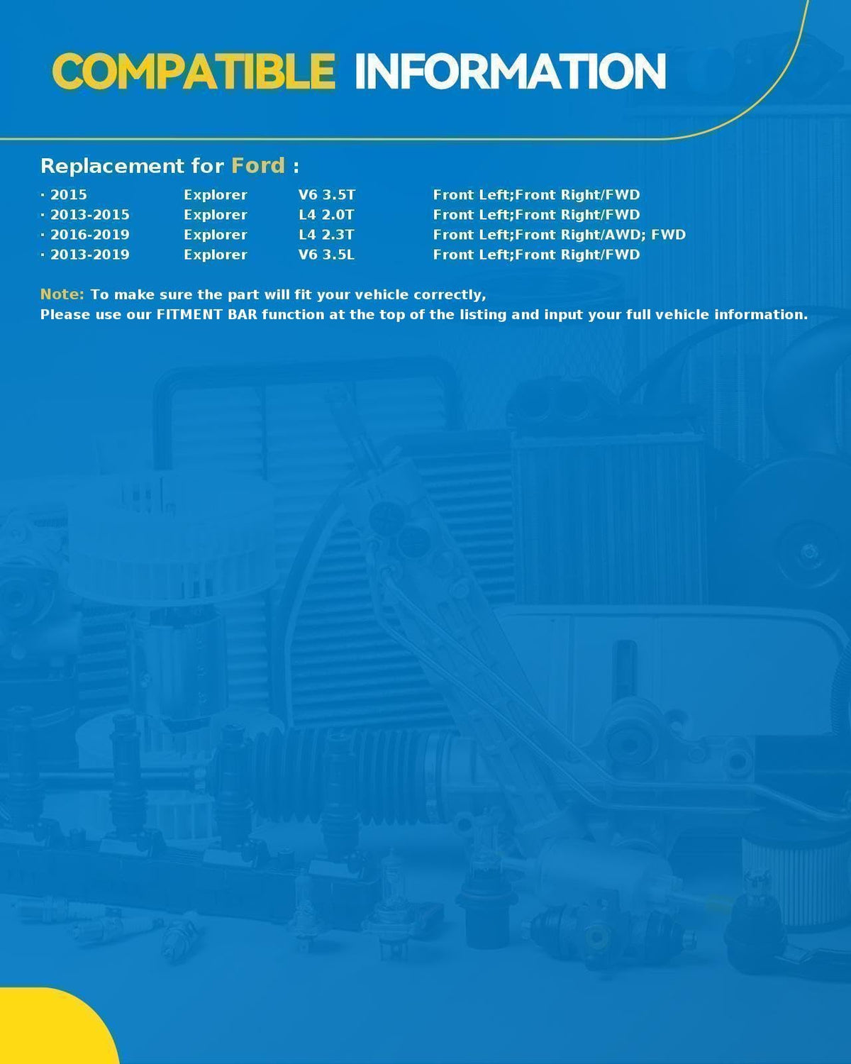 ?Adapted models?:PHILTOP Strut Assembly fit for Explorer 2013 2014 2015 2016 2017 2018 2019. Replace complete shocks struts assembly No#:172730 172729 but to perfectly fit your vehicle, you can use the year, make, and model in the 'Amazonconfirmedfit ' filtering system in the upper left corner of the link to confirm compatibility. | ?Shorten the braking distance?: A new struts assembly helps maximize tire-to-road contact and distributes body weight evenly to each tire, which can shorten braking distances due to strut wear | ?Prevent rollover and sideslip?:Replacing the worn struts improves roll and skid when turning and enhances cab capacity, providing you with a smoother ride | ?Reduce rebound?:Damping rods reduce body vibration and bounce by generating resistance through the flow of fluid to absorb or slow down the direct impact of energy | ?Improve vehicle handling?:PHILTOP strut provides structural support to the vehicle suspension, helping to restore body height to prevent grounding. It will improve driving maneuverability by 50%