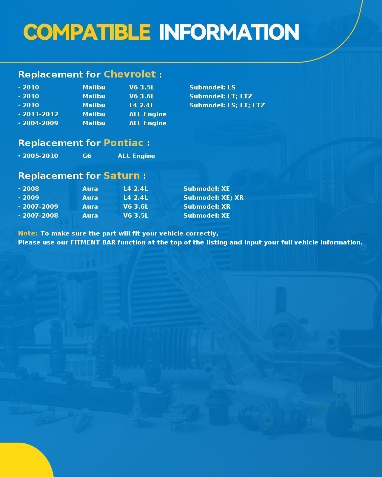 ?Adapted Models?:Philtop Strut Assembly Fit For Malibu 2004 2005 2006 2007 2008 2009 2010-2012, G6 2005-2010, Aura 2007-2009. Replace Complete Shocks Struts Assembly No#:172199 172200 But To Perfectly Fit Your Vehicle, You Can Use The Year, Make, And Model In The 'Amazonconfirmedfit ' Filtering System In The Upper Left Corner Of The Link To Confirm Compatibility. | ?Shorten The Braking Distance?: A New Struts Assembly Helps Maximize Tire-To-Road Contact And Distributes Body Weight Evenly To Each Tire, Which Can Shorten Braking Distances Due To Strut Wear | ?Prevent Rollover And Sideslip?:Replacing The Worn Struts Improves Roll And Skid When Turning And Enhances Cab Capacity, Providing You With A Smoother Ride | ?Reduce Rebound?:Damping Rods Reduce Body Vibration And Bounce By Generating Resistance Through The Flow Of Fluid To Absorb Or Slow Down The Direct Impact Of Energy | ?Improve Vehicle Handling?:Philtop Strut Provides Structural Support To The Vehicle Suspension, Helping To Restore Body Height To Prevent Grounding. It Will Improve Driving Maneuverability By 50%