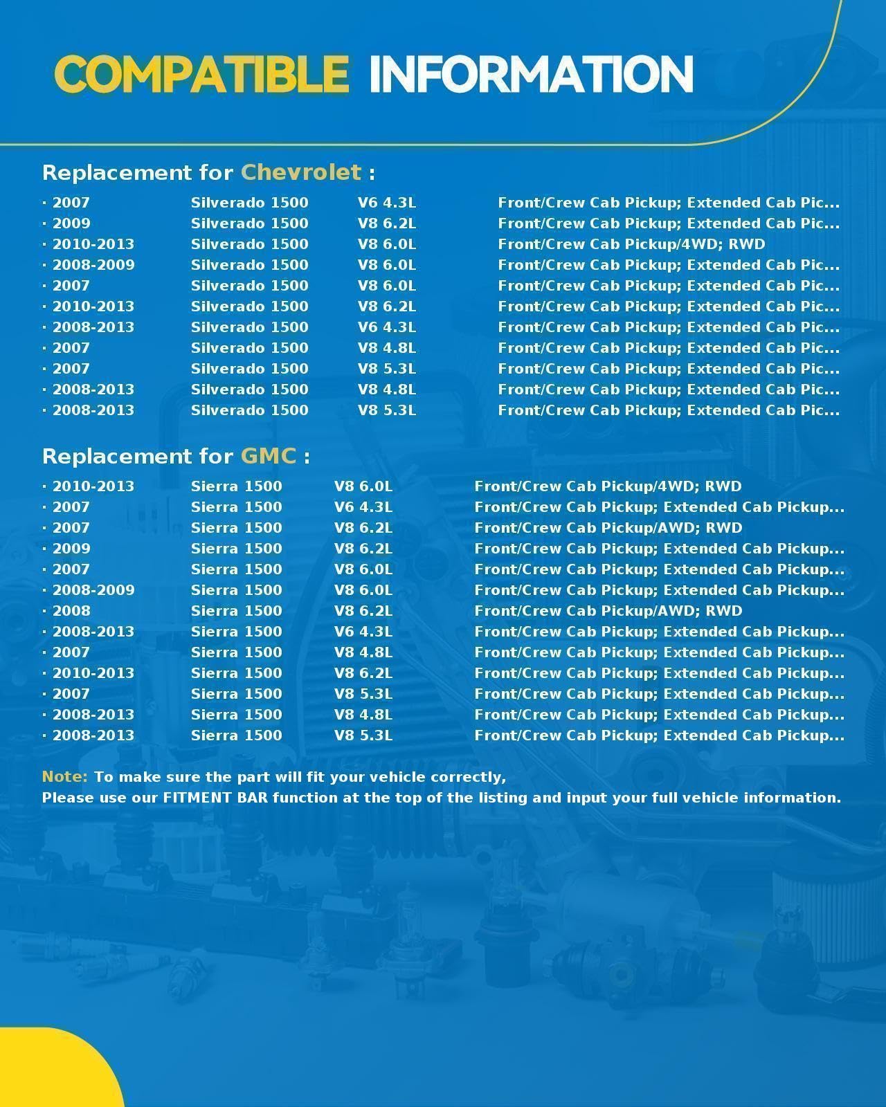 ?Adapted Models?:Philtop Front Struts Fit For Silverado 1500 2007-2013, Sierra 1500 2007-2013. Replace Complete Shocks Struts Assembly No#:139105 But To Perfectly Fit Your Vehicle, You Can Use The Year, Make, And Model In The 'Amazonconfirmedfit ' Filtering System In The Upper Left Corner Of The Link To Confirm Compatibility. | ?Shorten The Braking Distance?: A New Struts Assembly Helps Maximize Tire-To-Road Contact And Distributes Body Weight Evenly To Each Tire, Which Can Shorten Braking Distances Due To Strut Wear | ?Prevent Rollover And Sideslip?:Replacing The Worn Struts Improves Roll And Skid When Turning And Enhances Cab Capacity, Providing You With A Smoother Ride | ?Reduce Rebound?:Damping Rods Reduce Body Vibration And Bounce By Generating Resistance Through The Flow Of Fluid To Absorb Or Slow Down The Direct Impact Of Energy | ?Improve Vehicle Handling?:Philtop Strut Provides Structural Support To The Vehicle Suspension, Helping To Restore Body Height To Prevent Grounding. It Will Improve Driving Maneuverability By 50%