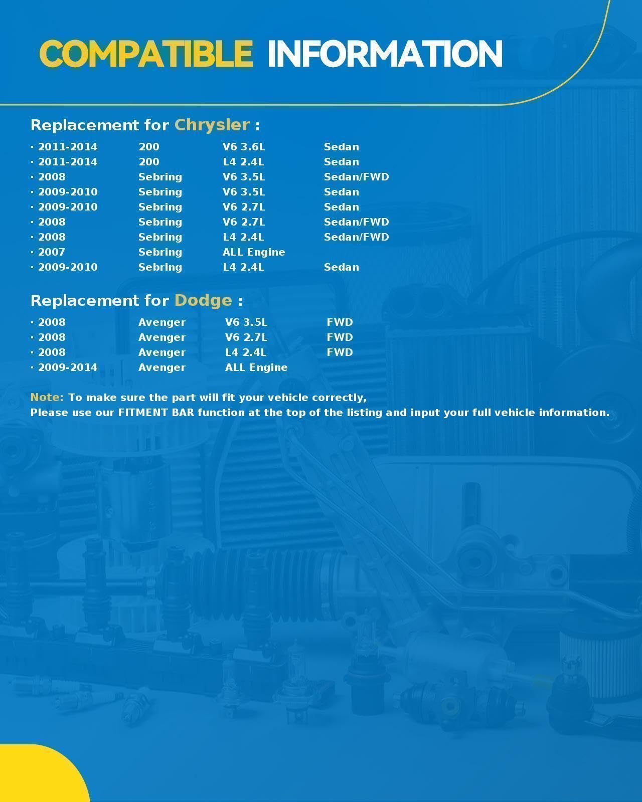 Struts Fitment: PHILTOP Complete Struts Replacement for 200 2011-2014, Avenger 2008-2014, Sebring 2007-2010. Please Comfirm our products are compatible with your car. Manufacturer Part Number: 171126*2 171126, 1345683, 1345750, 15310, 5105790AG, 817371, 92120011, G57447, SR4504 | Improved Handling: Shock struts help improve the handling of a vehicle by providing better stability and reducing body roll. This can make the vehicle more responsive and easier to control, especially during sudden maneuvers or when driving on uneven terrain. | OE-Quality, Vehicle-Specific Design: Application specific coil spring, mount and strut feature an OE-style design to ensure an optimized ride and handling experience unique to each vehicle profile. #OE# 171377L 171377R | Recovery Performance Of 100%: Struts that are worn out add 20% to halting distance. After changing the PHILTOP struts component, reduce the stopping distance and increase the safety distance. Boost your driving confidence while reducing halting distance and increasing steering speed. | Increased Safety: Shock struts help improve safety by providing better traction and reducing the risk of skidding or losing control during sudden braking or acceleration. They also help reduce the wear and tear on other suspension components, which can lead to a safer and more reliable vehicle overall.