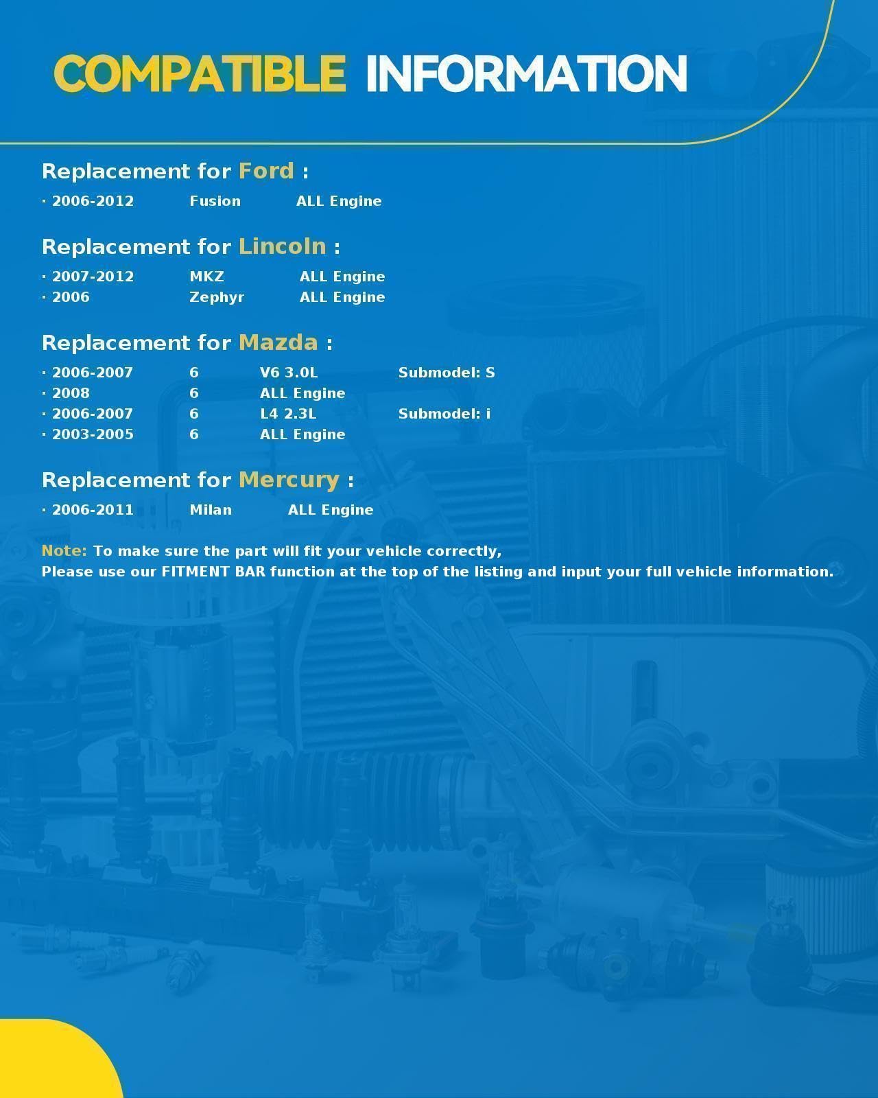 Struts Fitment: PHILTOP Complete Struts Replacement for 6 2003-2008 3.0L, 2.3L, Zephyr 2006-2006, MKZ 2007-2012, Milan 2006-2011, Fusion. Please Comfirm our products are compatible with your car. Manufacturer Part Number: 5784*2 | Improved Handling: Shock struts help improve the handling of a vehicle by providing better stability and reducing body roll. This can make the vehicle more responsive and easier to control, especially during sudden maneuvers or when driving on uneven terrain. | OE-Quality, Vehicle-Specific Design: Application specific coil spring, mount and strut feature an OE-style design to ensure an optimized ride and handling experience unique to each vehicle profile. #OE# 32348, 342476, 344384, 344436, 345073, 555054, 58930, 61675, 77953, 81930, G63866, KG5195, KG54341, MS3431351B | Recovery Performance Of 100%: Struts that are worn out add 20% to halting distance. After changing the PHILTOP struts component, reduce the stopping distance and increase the safety distance. Boost your driving confidence while reducing halting distance and increasing steering speed. | Increased Safety: Shock struts help improve safety by providing better traction and reducing the risk of skidding or losing control during sudden braking or acceleration. They also help reduce the wear and tear on other suspension components, which can lead to a safer and more reliable vehicle overall.