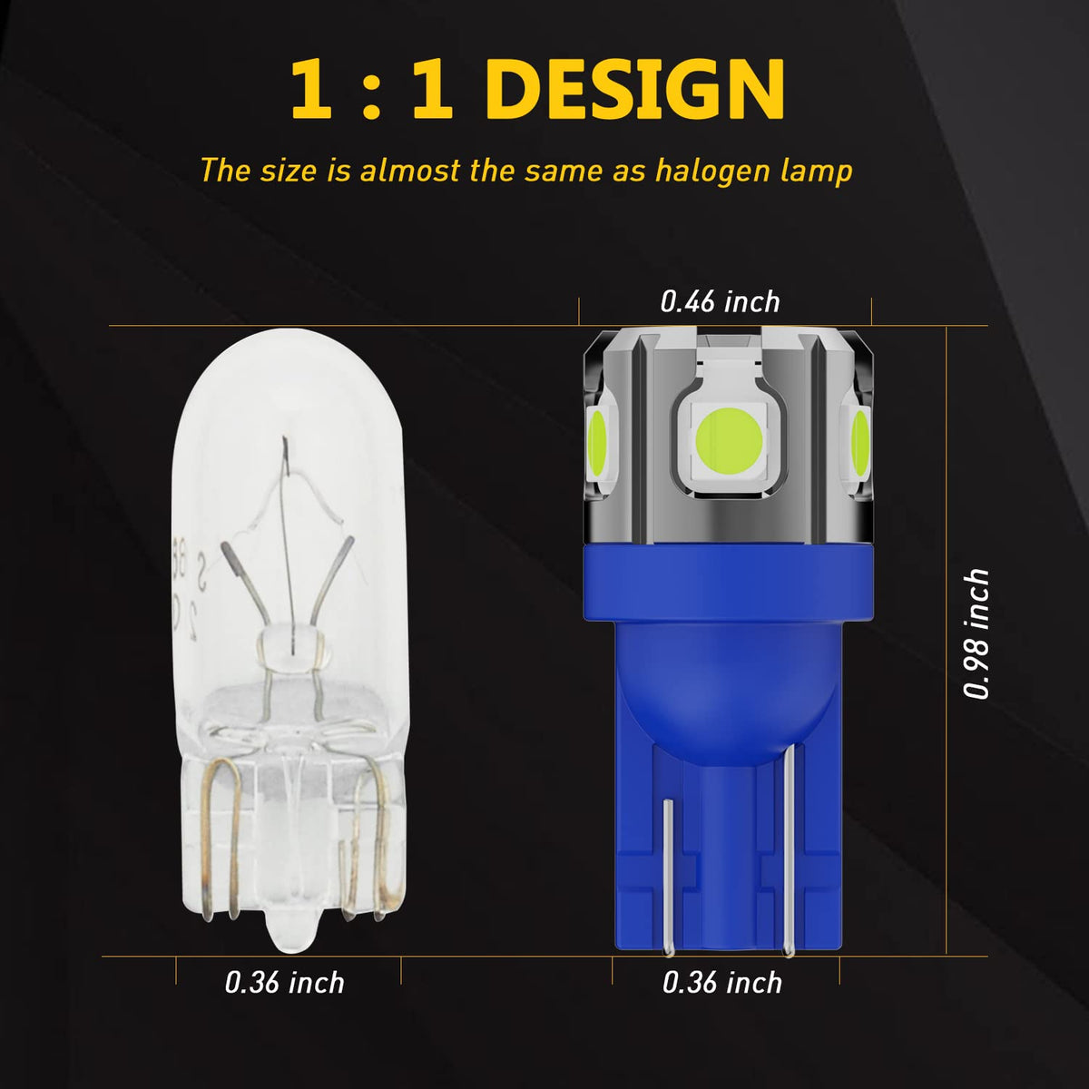 Specifications:Led Chip: 3030 Smdvoltage: 1224Vcolor: Ice Bluelumens: 600Lmce Certifiedfeatures:600 Lumens Super Bright, Low Power Consumptionnon-Polarity Design, Easy To Install Plug And Playbuilt-In Constant Current Ic, Wide Working Voltagephinlion 194 Led Bulbs Are Can-Bus Error Free For Most Vehicleswhole Aluminum Body For Better Heat Dissipation, Longer Lifespanplease Note:1)These 194 168 T10 Bulbs Are Canbus Error Free For Most Vehicles But The Error Free Capability May Limited To Few Newest Vehicles Especially The Newest European Vehicle2)Amazon Fitment System Is Not 100% Accurate, Please Check The Owners Manual And Confirm The Size Is Correct For Your Vehicle Before Purchasing