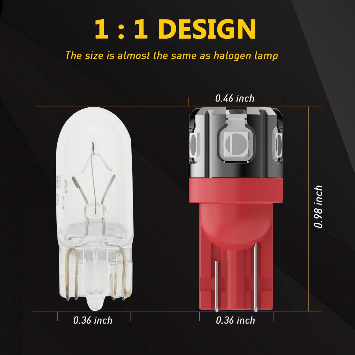 Specifications:Led Chip: 3030 Smdvoltage: 1224Vcolor: Redlumens: 600Lmce Certifiedfeatures:600 Lumens Super Bright, Low Power Consumptionnon-Polarity Design, Easy To Install Plug And Playbuilt-In Constant Current Ic, Wide Working Voltagephinlion 194 Led Bulbs Are Can-Bus Error Free For Most Vehicleswhole Aluminum Body For Better Heat Dissipation, Longer Lifespanplease Note:1)These Bulbs Are Canbus Error Free For Most Vehicles But The Error Free Capability May Limited To Few Newest Vehicles Especially The Newest European Vehicle2)Amazon Fitment System Is Not 100% Accurate, Please Check The Owners Manual And Confirm The Size Is Correct For Your Vehicle Before Purchasing