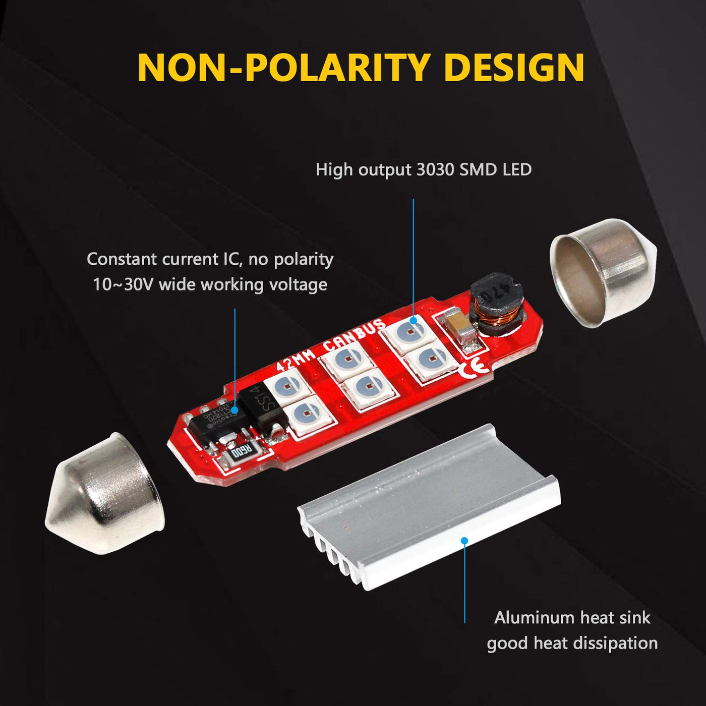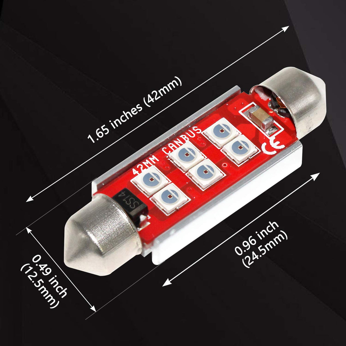 Phinlion Super Bright 211-2 Led Bulb 3030 6-Smd Festoon 41Mm 42Mm 578 212-2 Bulbs For Car Interior Map Dome Trunk Courtesy Light