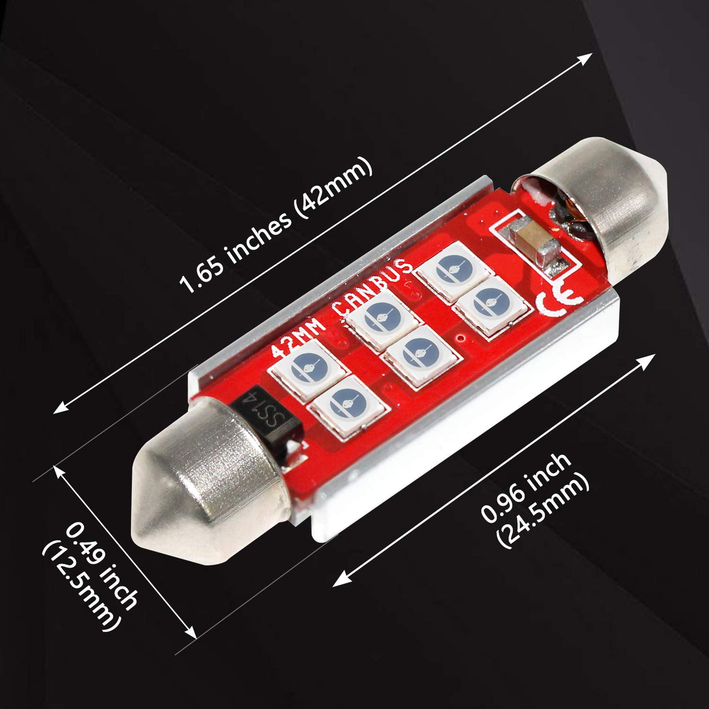 Phinlion Super Bright 212-2 Led Bulb 3030 6-Smd Festoon 41Mm 42Mm 211-2 214-2 578 Bulbs For Car Interior Map Dome Trunk Courtesy
