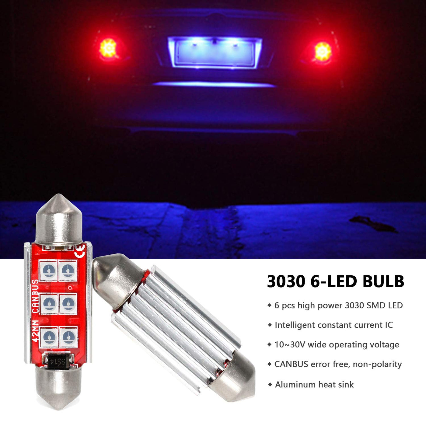 Specifications:Led Chip: 3030 Smdvoltage: 1030V(Fits 12V24V Vehicles)Color: Bluelumens: 500Lmfeatures:500 Lumens Super Brightnon-Polarity Design, Easy To Install Plug And Playbuilt-In Constant Current Ic, Wide Working Voltagebuilt-In Canbus System, Error Free For Most Vehiclesaluminum Heat Sink For Better Heat Dissipation, Longer Lifespanplease Note:1)This Bulb Is Canbus Error Free For Most Vehicles But The Error Free Capability May Limited To Few Newest Vehicles Especially The Newest European Vehicle2)Amazon Fitment System May Not Be 100% Accurate, Please Check The Owners Manual And Confirm The Size Is Correct For Your Vehicle Before Purchasing