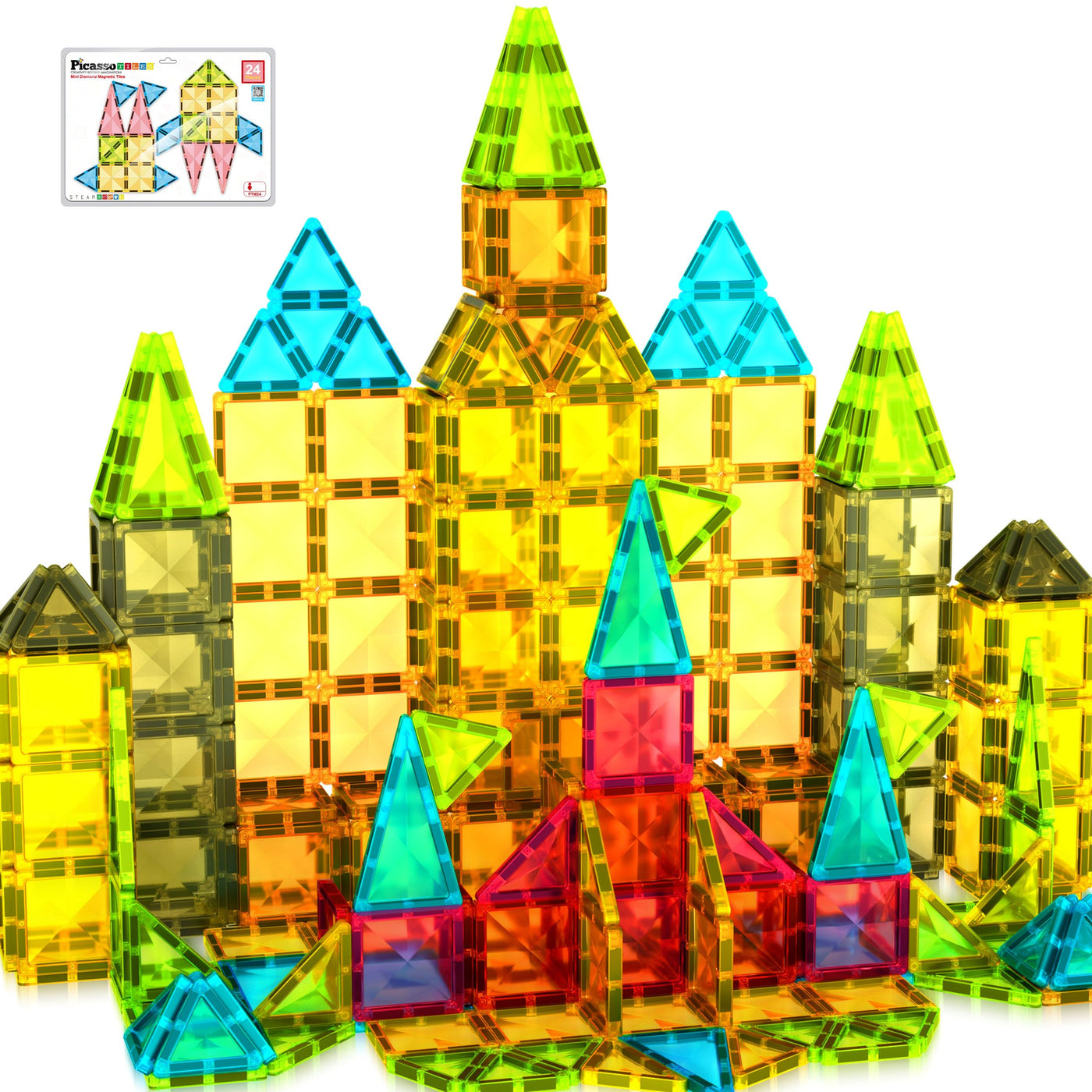 PicassoTiles 24pc Magnet Tile Building Blocks Mini Diamond Series Magnetized Toy Travel Size Compact Portable Magnetic Construction Block STEM Sensory Toy Early Education Learning Kids Ages 3+ PTM24
