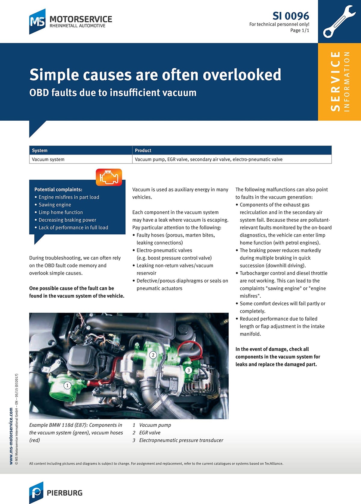 Q: What should I do if my Pierburg Vacuum Valve fails?A: If your Pierburg Vacuum Valve fails, it's important to replace it with a new, high-quality part to ensure optimal performance. Avoid used or copied products that may not meet OEM standards.