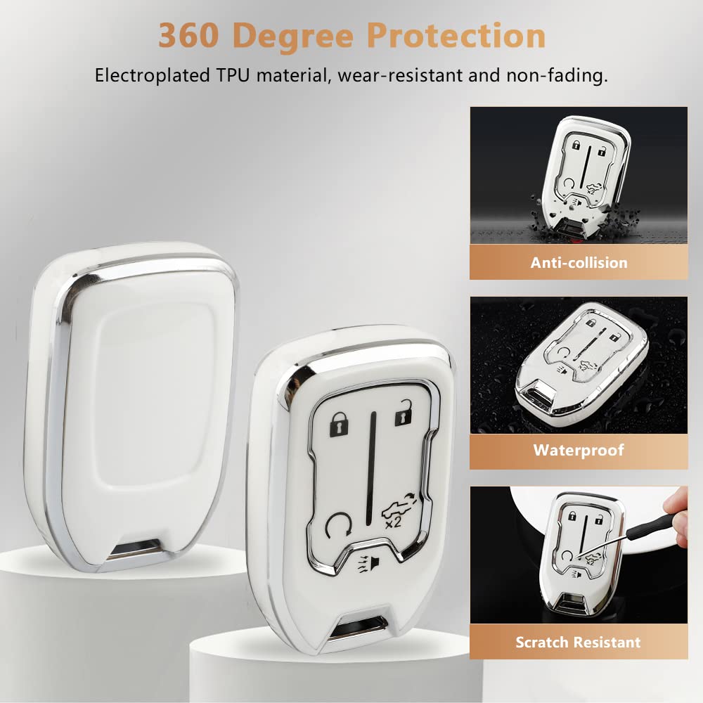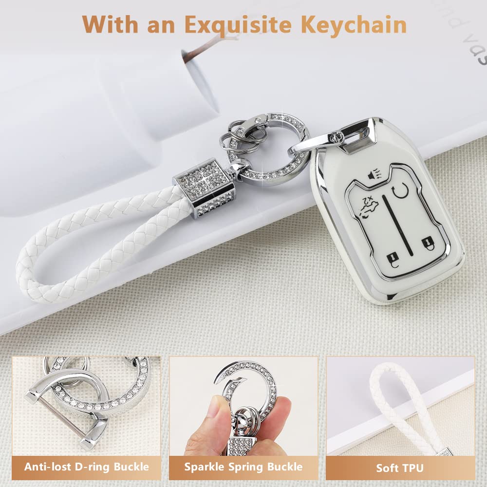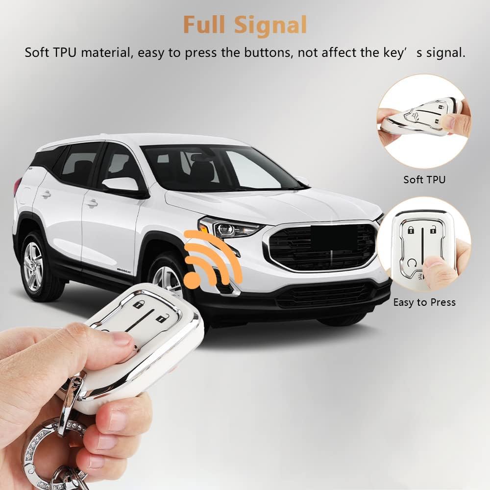 Pifoog Accessories For Chevy 5-Button Key Fob Cover Case Shell Soft Tpu Bling Car Keychain For Gmc Terrain Sierra Chevrolet Silv
