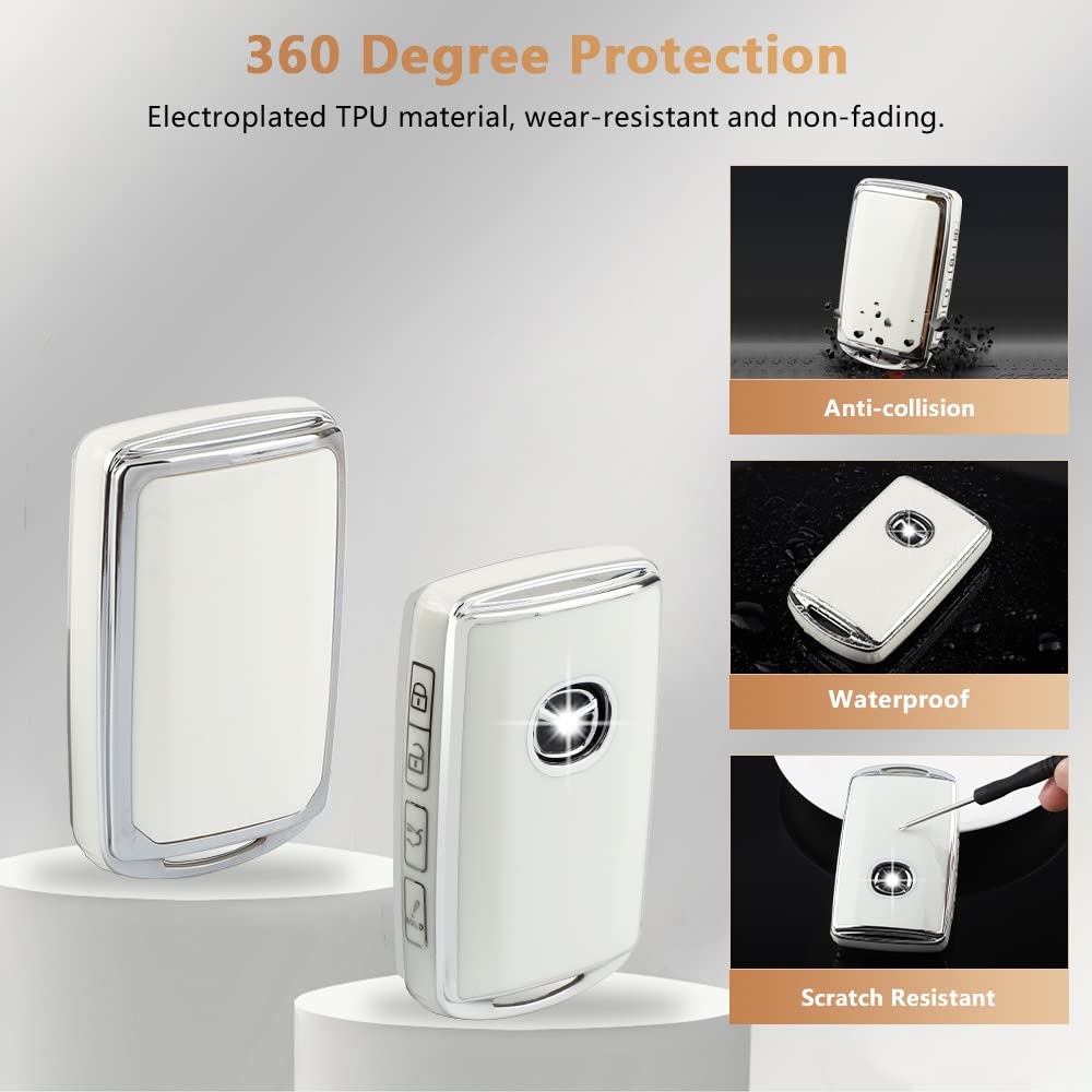 Specification Name: Premium Car Key Case for Mazda Material: Premium TPU and Crystal Color: White and Silver Kindly Note A. The applicable car models years given are for reference only. Please confirm your keys shape same as pictured before purchasing. B. To protect the key better, we have chosen a slightly thick material, which may make the key a bit difficult to press, but this is not a quality problem. Fitment Key fob cover for Mazda 3 2019 2020 2021 2022 Car key cover for Mazda 6 2020 2021 Accessories for Mazda CX 5 2020 2021 2022 Key shell for Mazda CX 9 2020 2021 2022 TPU key fob case for Mazda CX 30 2020 2021 Smart key case for Mazda CX 50 2023 Package Lists 1PC 4 - Buttons White Key Fob Cover for Mazda 1PC Glitter Car Keychain for Mazda 1PC Screwdriver (Keep it with you so you can take out the keys at any time.) If there is any problem with the product or dissatisfaction within 30 days of receiving the goods. Please contact us through Amazon, PIFOOG will reply you within 24 hours. Hope you get more surprise from PIFOOG's product!