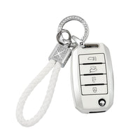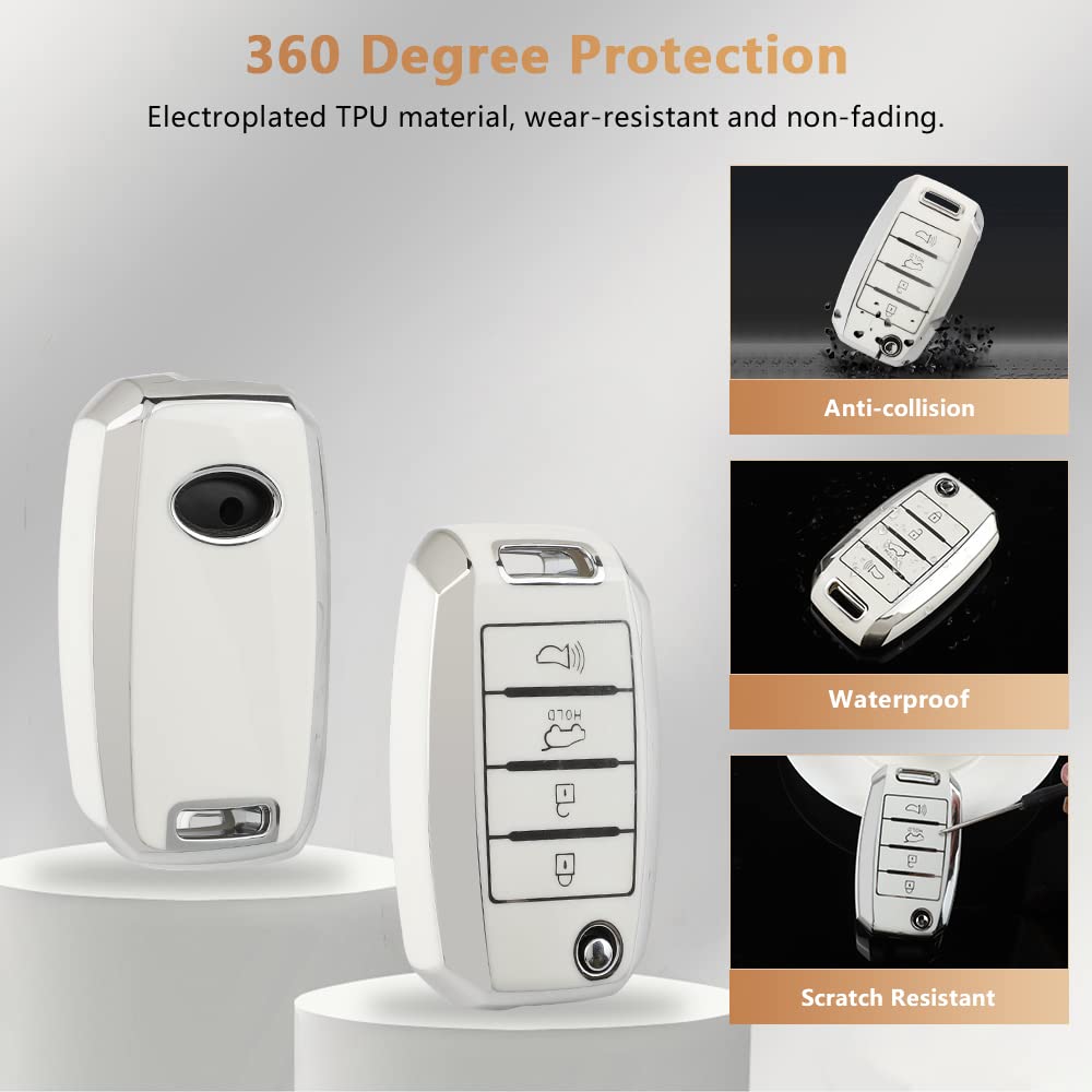 Pifoog For Kia Key Fob Cover Tpu White Silver 4 Buttons Keys Case Shell Protector Bling Keychain For Kia Sorento Optima Soul Spo