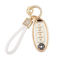 Note: Two Kinds Of Keychains Are Be Sent Randomly. (See Picture 2) Specification Name: For Nissan Key Fob Cover Material: Tpu And Crystal Color: White And Gold