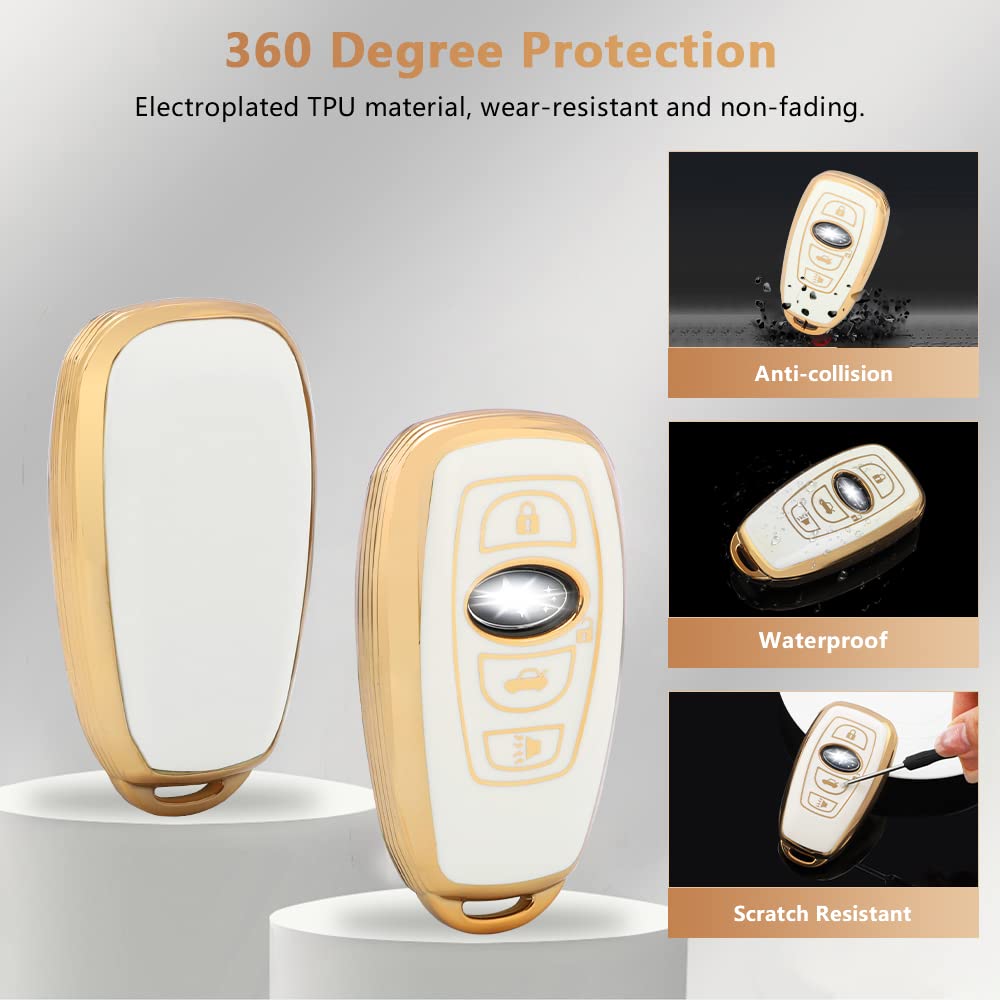 Specification Name: For Subaru Key Fob Cover 4 Buttons Material: TPU and Crystal Color: White and Big Gold Edge Kindly Note: The applicable car models years given are for reference only. Please confirm your keys shape same as pictured before purchasing. Pls refer to picture 6th. Fitment Key Fob Cover for Subaru Ascent 2019 2020 2021 2022 Key Fob Cover for Subaru Outback 2022 For Subaru Outback Limited 2015 2016 2017 2018 2019 2020 2021 For Subaru Impreza Limited 2017 2018 2019 2020 For Subaru Impreza Sport 2017 2018 2019 2020 2021 2022 For Subaru Forest 2016 2017 2018 - 2022 For Subaru Crosstrek Limited 2017 - 2022 For Subaru Legacy Limited 2015 - 2021 For Subaru Legacy Premium 2020 - 2022 For Subaru BRZ Limited 2015 - 2022 For Subaru WRX Limited 2016 - 2021 For Subaru XV Crosstrek Limited 2016 For Subaru XV Crosstrek Hybrid Touring 2016 NOTE: It is applicable if your car key shape and button pattern are same as the picture. Package Lists 1PC TPU Car Key Cover for Subaru 1PC Bling Key Chain for Subaru 1PC Screwdriver (Keep it with you so you can take out the keys at any time.) Hope you get more surprise from PIFOOG's product!