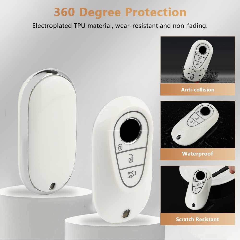 Pifoog Key Cover For Mercedes Benz Bling Keychain 3 Buttons Tpu Keys Fob Case Protector Accessories For 2021-2022 Mercedes-Benz