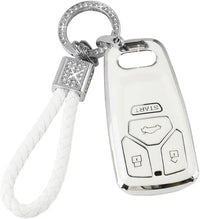 Pifoog Key Fob Cover Accessories For Audi Bling Keychain 3 4 Buttons Tpu Keys Case Protector Shell Soft White Silver For Audi Q5