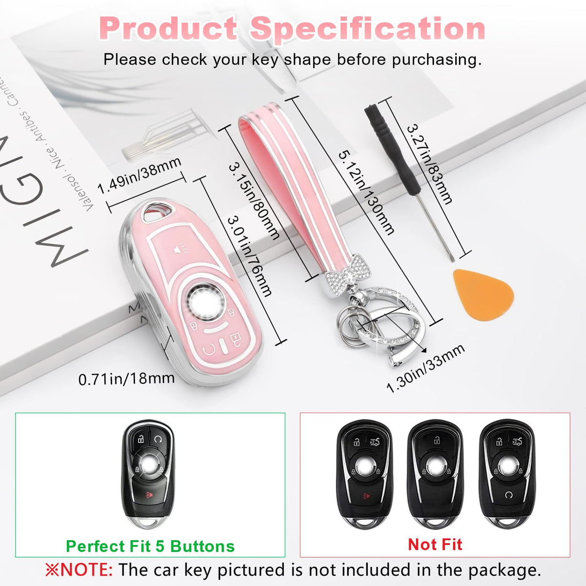 Specification Name: Pink Key Fob Cover Fit for Buick Material: TPU and Crystal Color: Pink and Big Silver Edge Features: Snug fit, Not easy to fade, Anti-lost Design, Full Signal, Full Protection, Cute and Stylish, Anti-Scratch etc. Applicable Models (ONLY Fit for 5 Buttons) Pink key fob cover fit for Buick Encore GX 2025 2024 2023 2022 2021 2020 Pink Car key cover fit for Buick Encore 2017 2018 2019 2020 2021 2022 Pink key case fit for Buick Envista 2024 Pink key fob protector case fit for Buick Envista 2025 Pink key fob protector case fit for Buick Regal Sportback 2018 Pink key fob shell fit for Buick Regal Tourx Preferred 2018 NOTE: It is applicable if your car key shape and button pattern are same as the picture. Package Lists 1PC Pink Car Key Fob Cover Fit for Buick 1PC Pink Car Keychain Fit for Buick 1PC Mini Screwdriver (Pls keep it with you so you can take out the keys at any time.) Features Pink Car Key Shell Fit for Buick Pink Car Key Cover Case Fit for Buick 5 Buttons Car Key Cover Case Fit for Buick 5 Buttons Car Key Fob Cover Fit for Buick 5 Buttons Key Fob Cover Fit for Buick 5 Buttons Key Fob Case Fit for Buick 5 Buttons Key Fob Protector Case Fit for Buick Girly Key Fob Protector Case Fit for Buick Cute Key Fob Protector Case Fit for Buick Cute Key Fob Cover Fit for Buick Kindly Note 1. Due to shooting conditions and angles, there may be slight color variations between the actual product and the images. 2. To better protect the key, PIFOOG chooses a slightly thick material. Pls use a little force when pressing the button. Hope you get more surprise from PIFOOG's product!