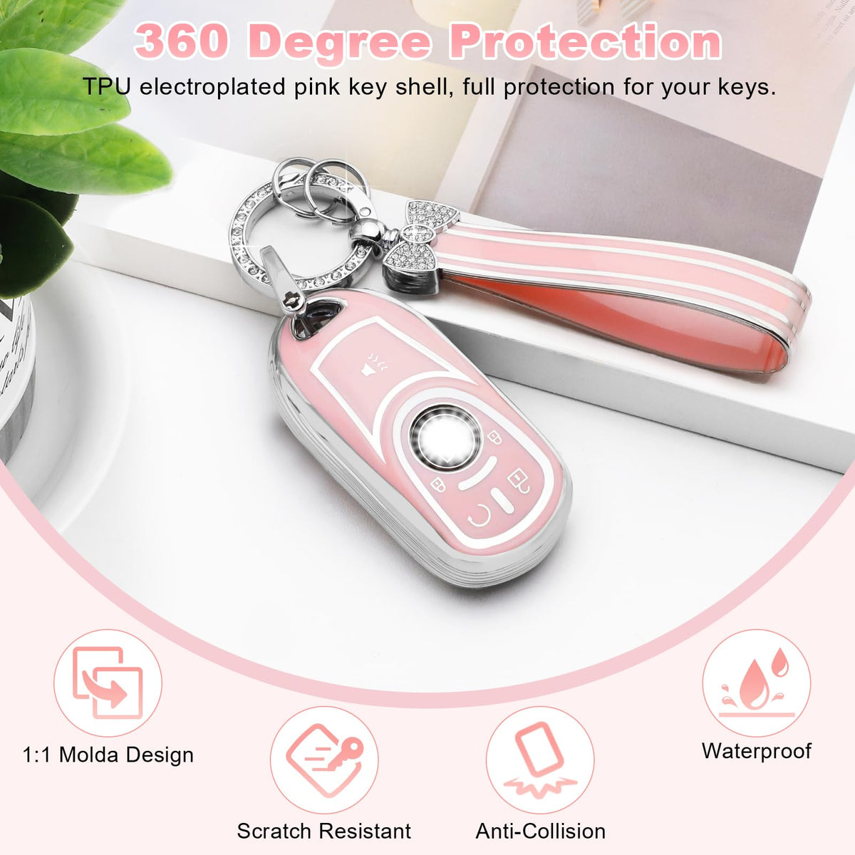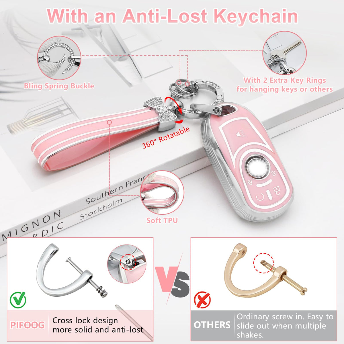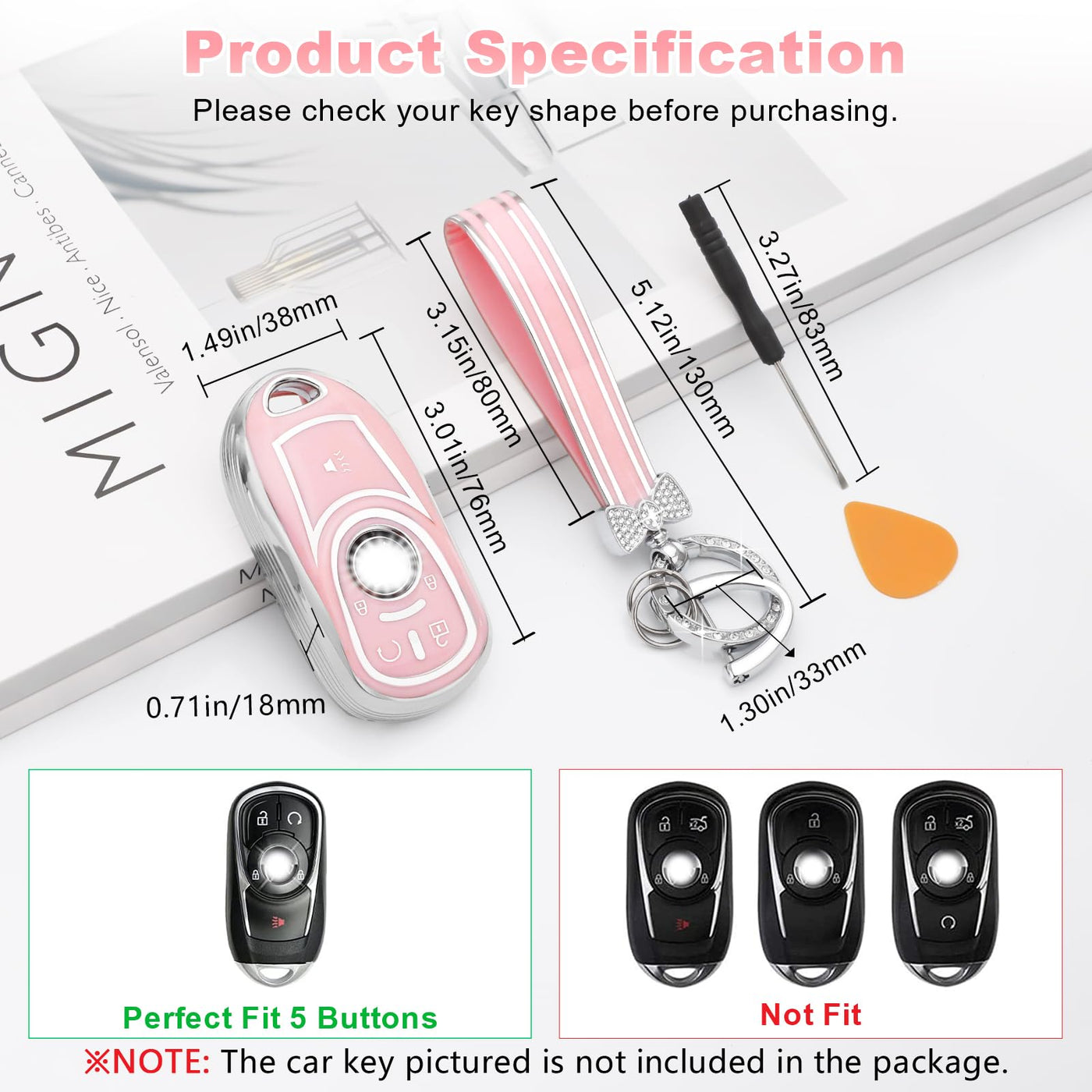 PIFOOG Key Fob Cover Fit for Buick Encore GX Envista Regal Sportback Pink 5 Button Car Keys Shell Case Bling Keychain Full Prote