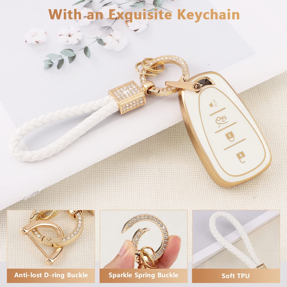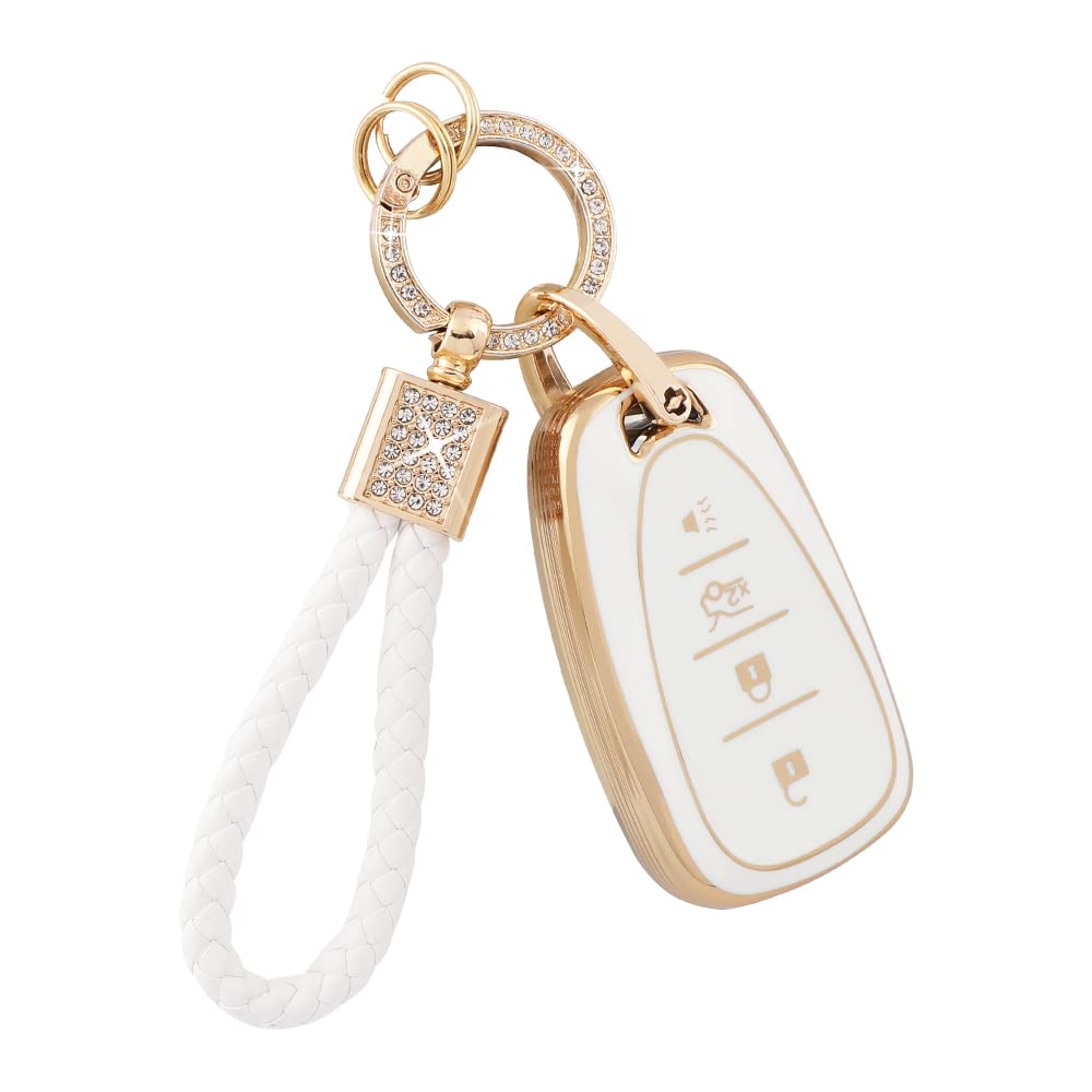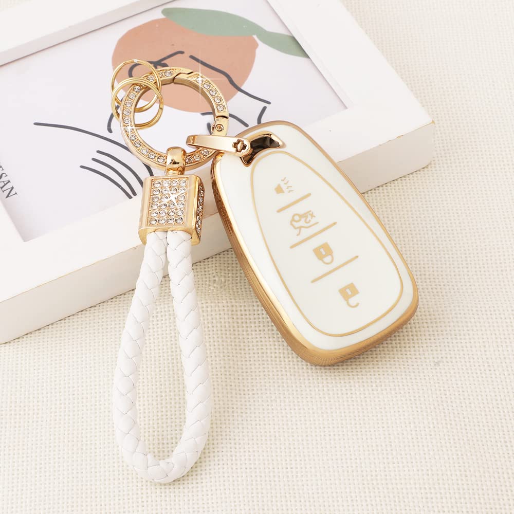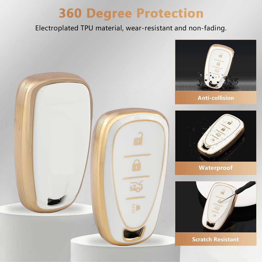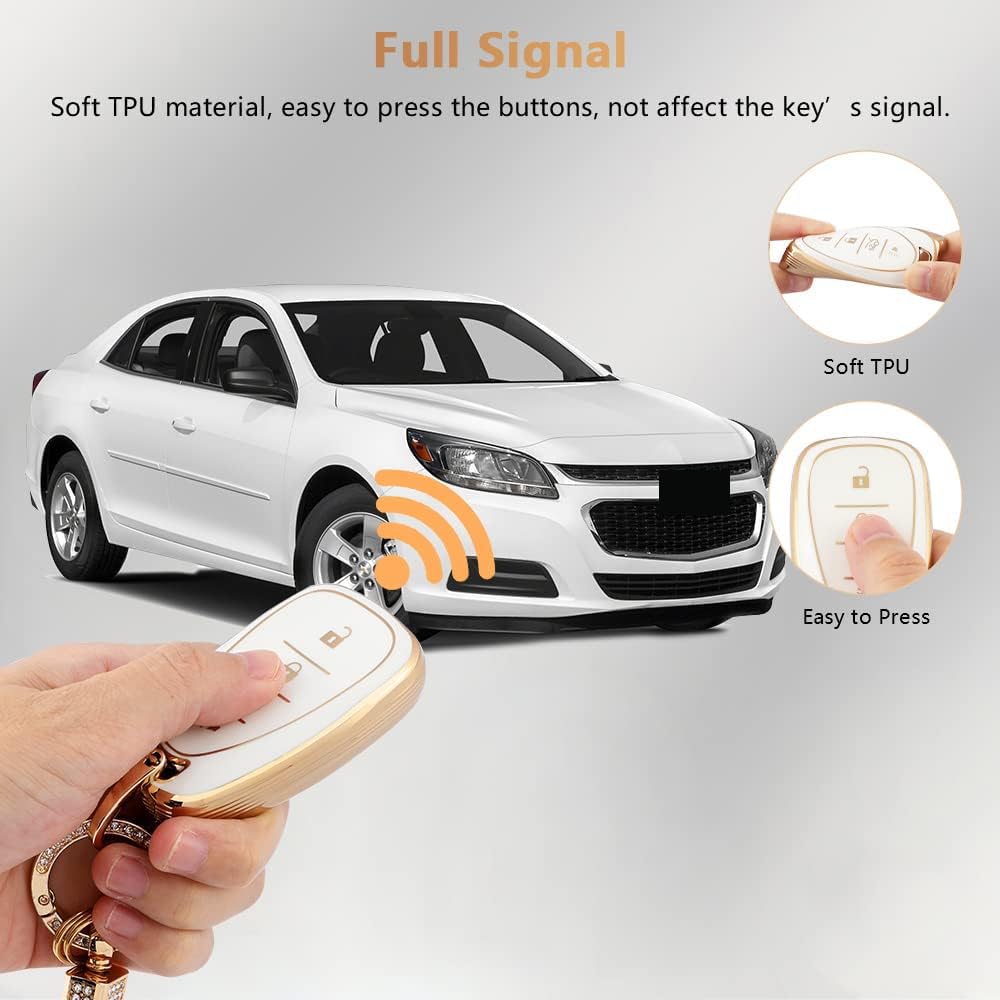 Specification Name: Premium Car Key Fob Cover for Chevy Chevrolet Material: TPU and Crystal Color: White and Big Gold Edge Kindly Note: The applicable car models years given are for reference only. Please confirm your keys shape same as pictured before purchasing. Pls refer to picture 6th. Fitment For Chevy Equinox 2017 - 2022 For Chevy Malibu 2016 - 2023 For Chevy Traverse 2017 - 2023 For Chevy Blazer 2019 - 2023 For Chevy Camaro 2016 - 2023 For Chevy Spark 2017 - 2022 For ChevyTrailblazer 2021 - 2023 For Bolt EV 2017 - 2023 For Trax LT 2017 - 2022 For Cruze LT 2017 - 2018 For Volt 2016 - 2019 NOTE: Please confirm your keys shape same as pictured before purchasing. Package Lists 1PC Car Key Fob Shell for Chevy 1PC Glittering Car Key Chain for Chevy 1PC Screwdriver (Keep it with you so you can take out the keys at any time.)