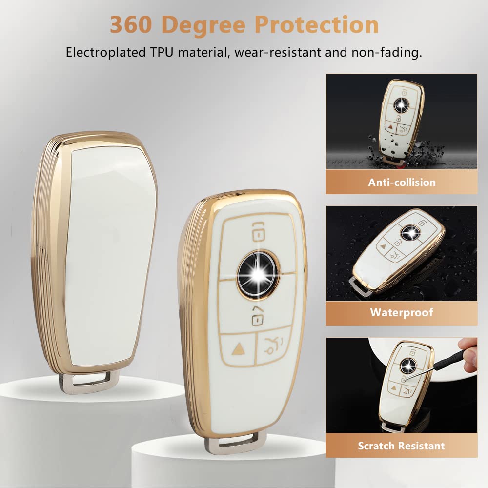 Pifoog Key Fob Cover For Mercedes Tpu White Gold Bling Keychain Accessories Fit Benz Gla Gle Glb Gls Glc Cla Cls C300 Amg A E S