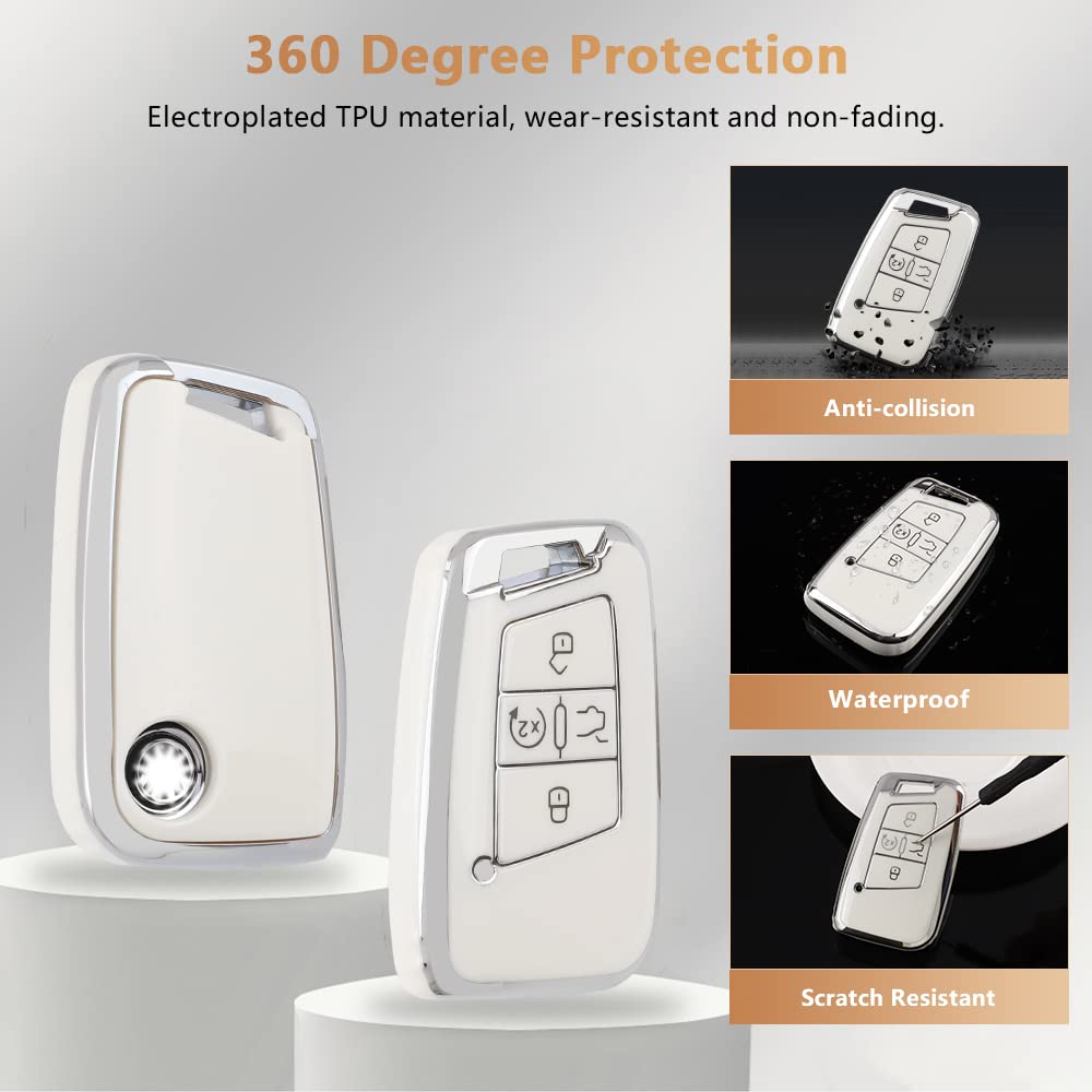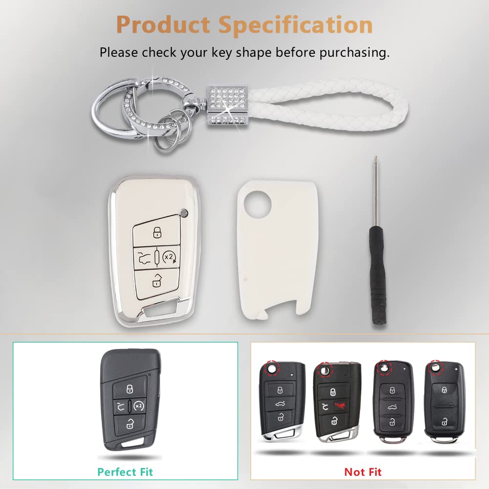 Pifoog Key Fob Cover For Vw Soft Tpu 4 Button Keys Case Shell Protector Glitter Keychain Car Accessories For Volkswagen Jetta Tiguan Atlas Arteon Taos Girly Cute White Gold