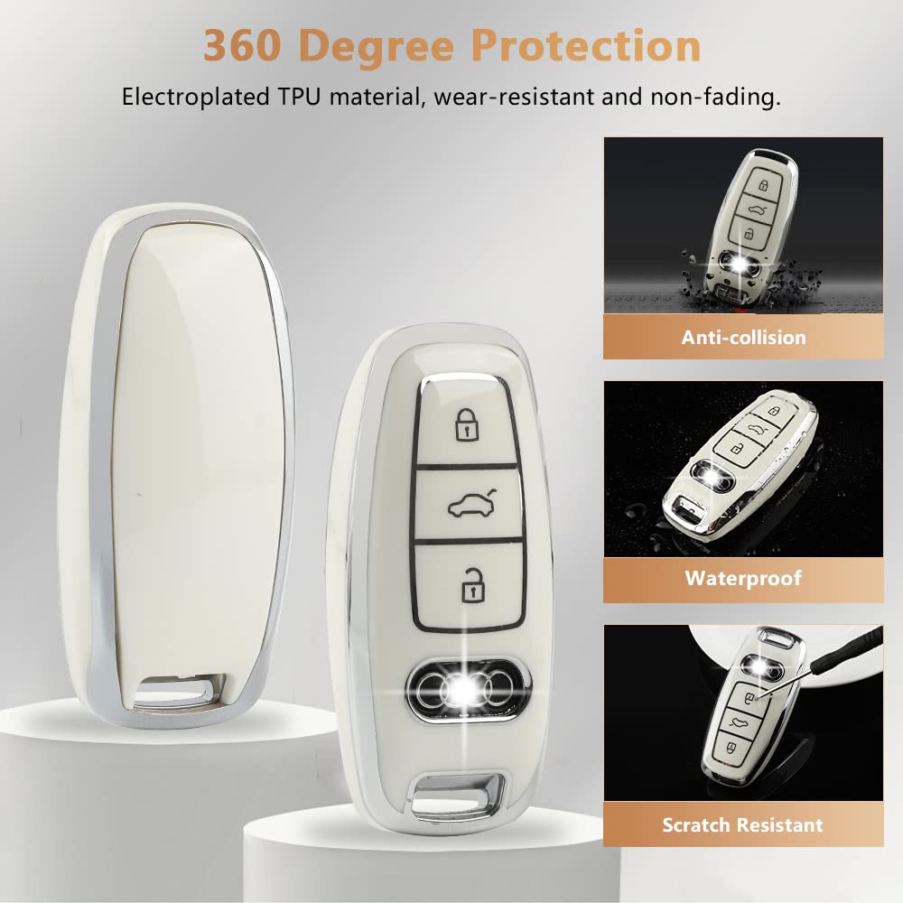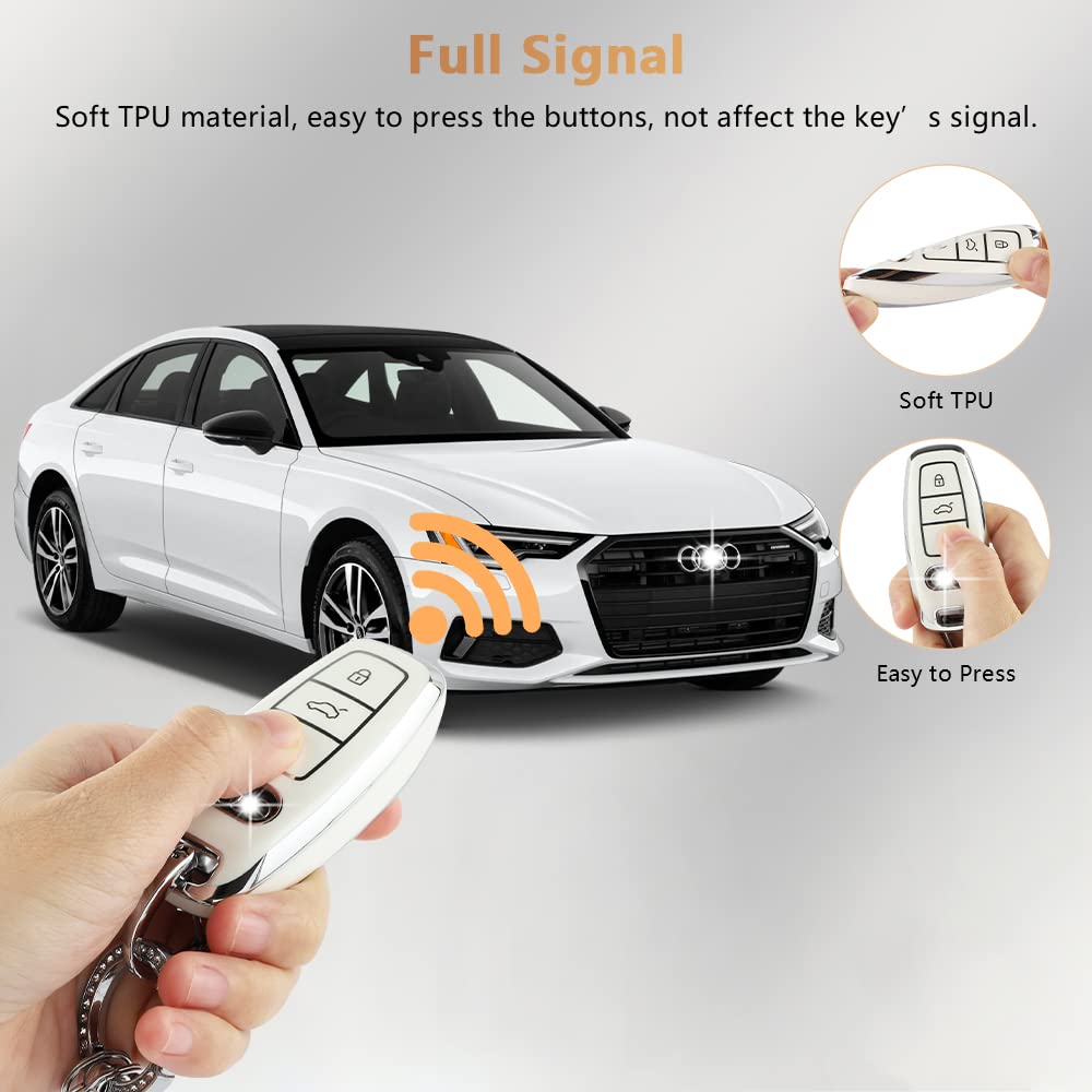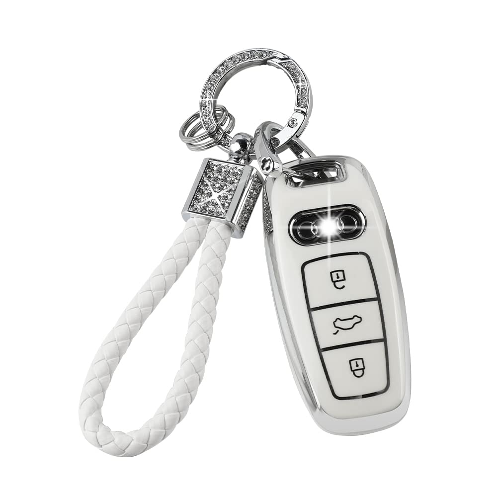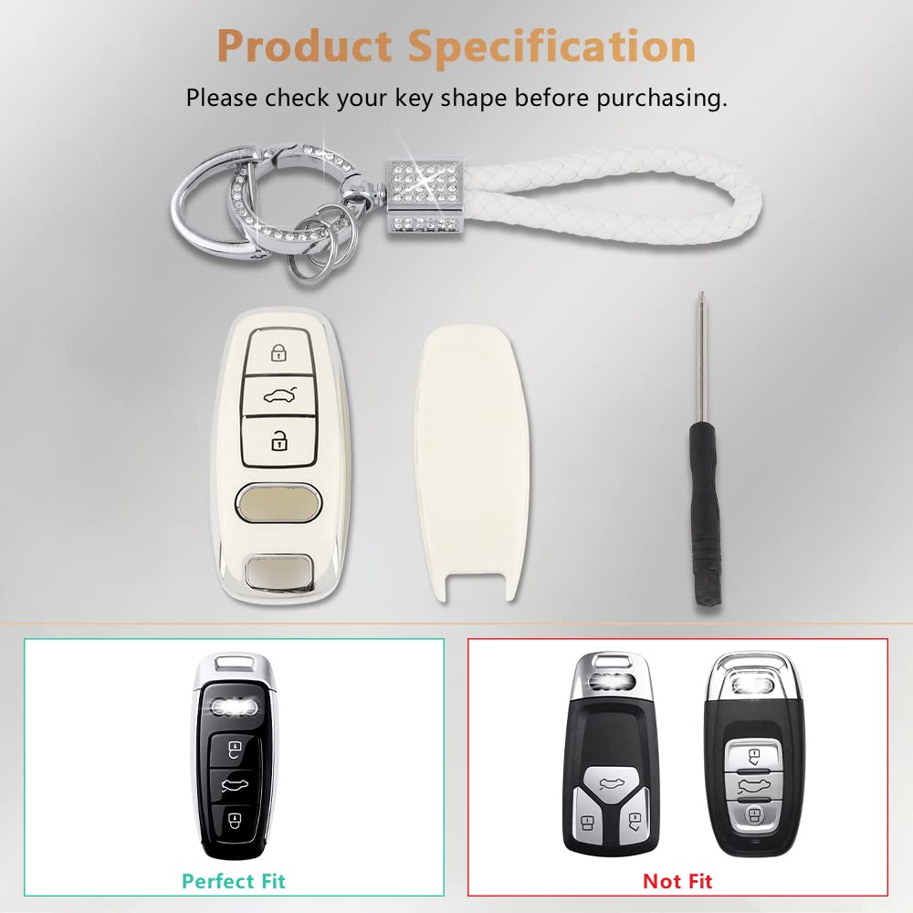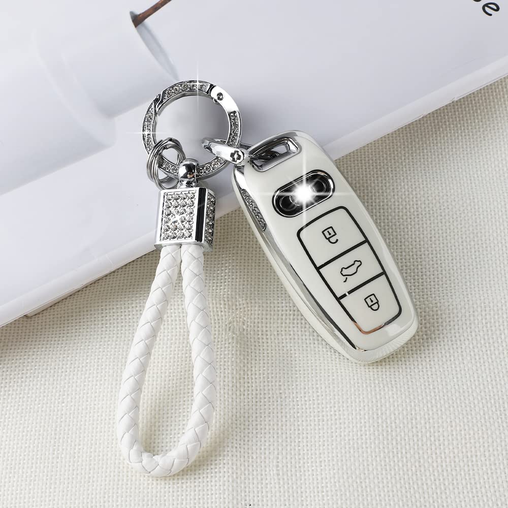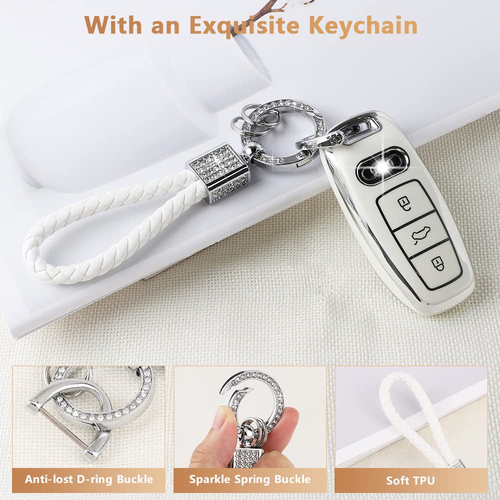 Pifoog White Key Fob Cover For Audi A3 A6 A7 A8 Q7 Q8 E-Tron Rs7 S6 S7 Sq7 Sq8 Accessories 3 Buttons Soft Tpu Keys Case Shell Bling Keychain Lanyard Protection Girly Women