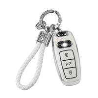 Specification Name: Premium White Key Fob Cover for Audi Material: Soft TPU Color: White and Silver