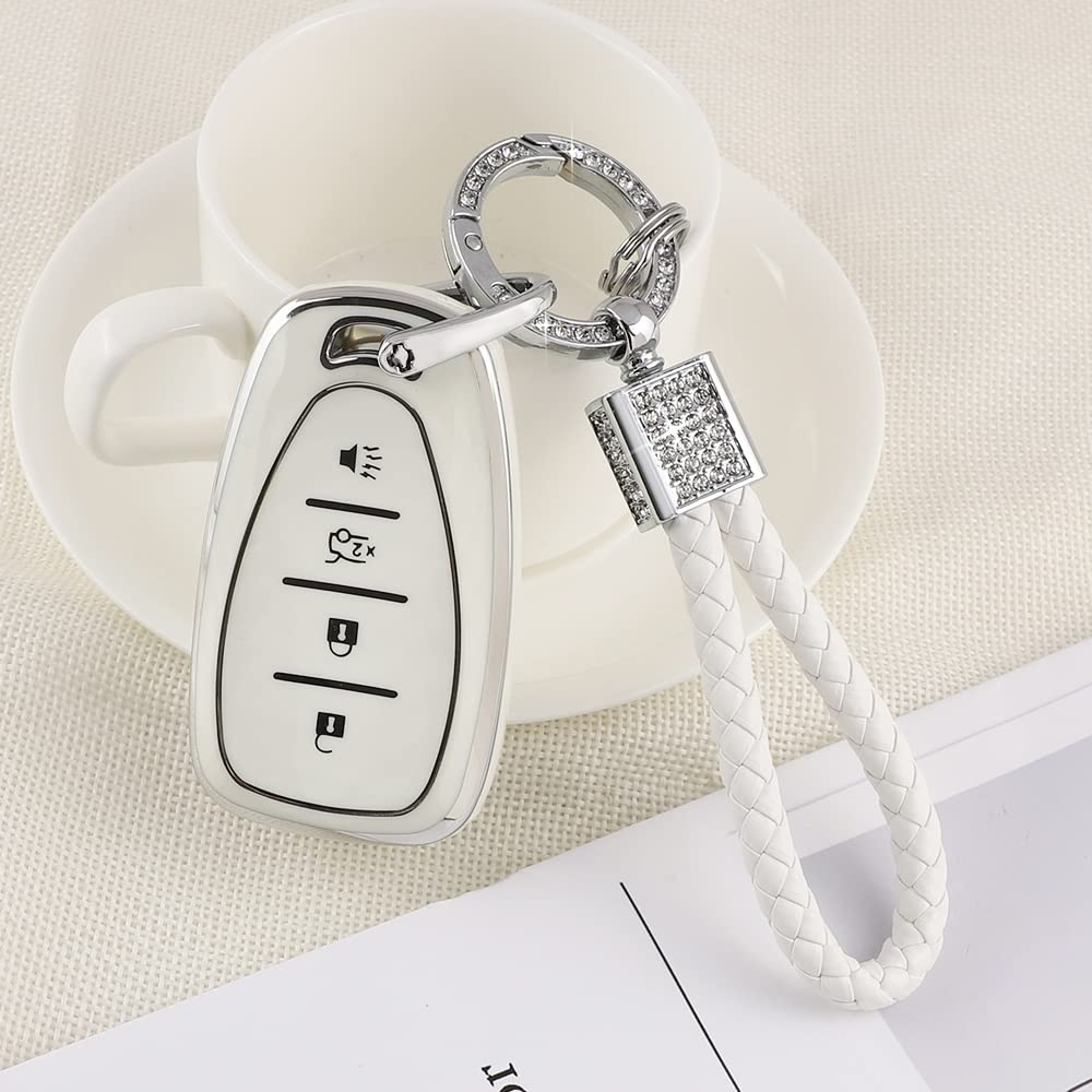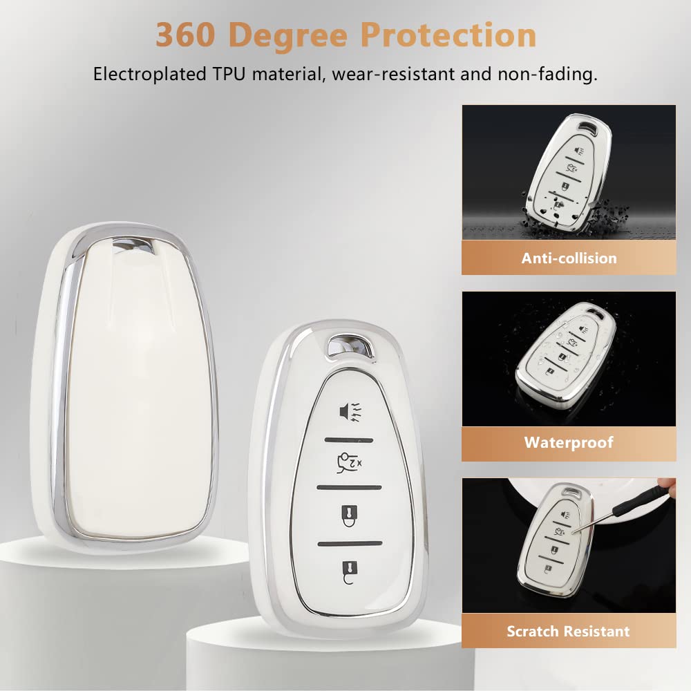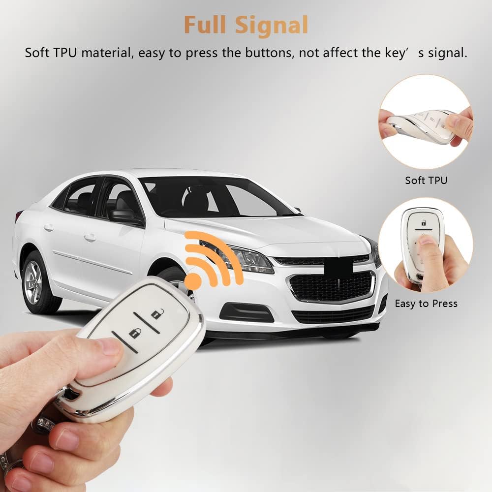 PIFOOG White Key Fob Cover for Chevy Chevrolet Malibu Equinox Camaro Blazer Traverse Accessories 4 Button Keys Shell Case Glitte