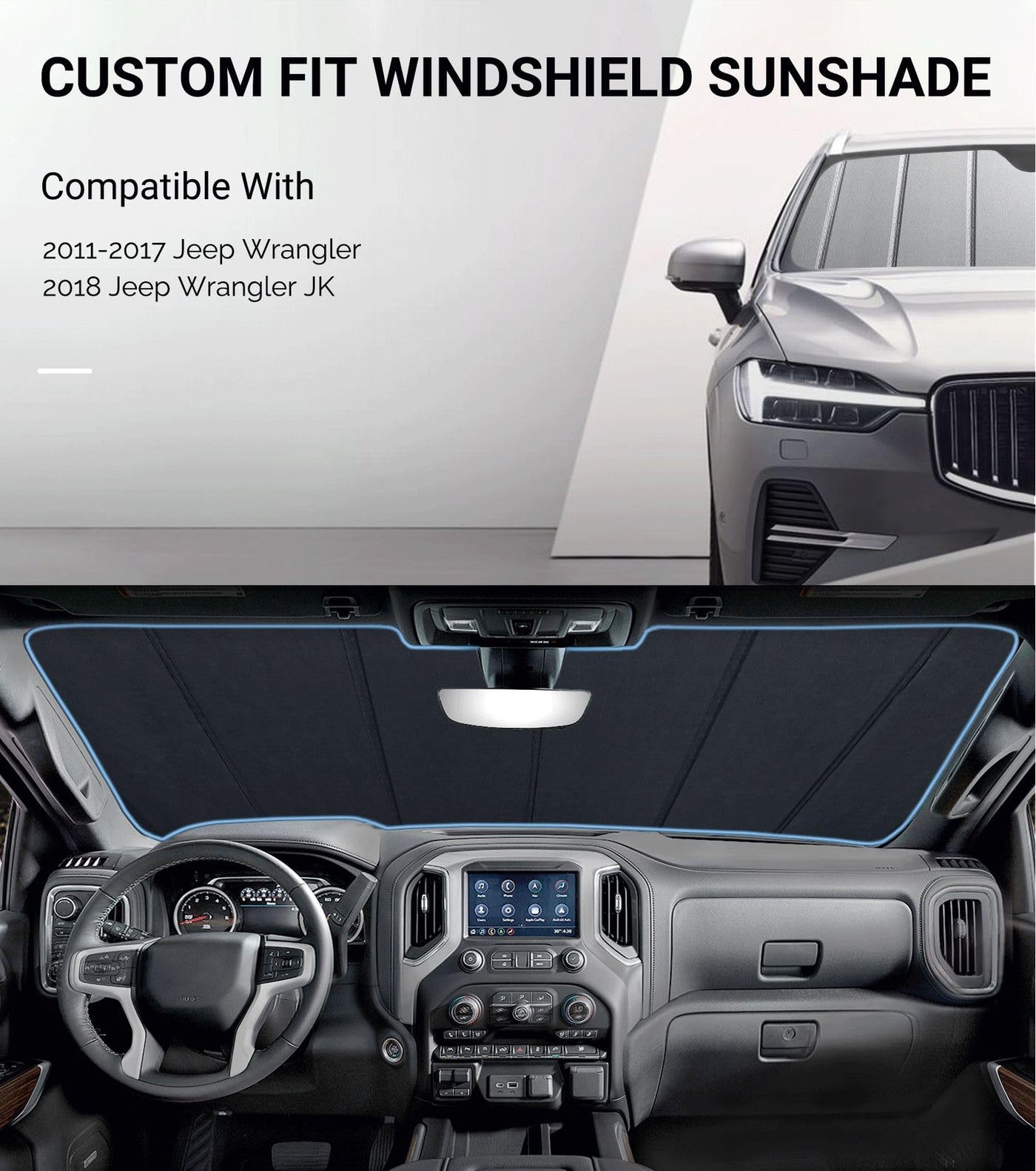 Pigenius Windshield Sunshade For Jeep Wrangler 2011-2017, Wrangler Jk 2018 Front Window Shade- Safeguard