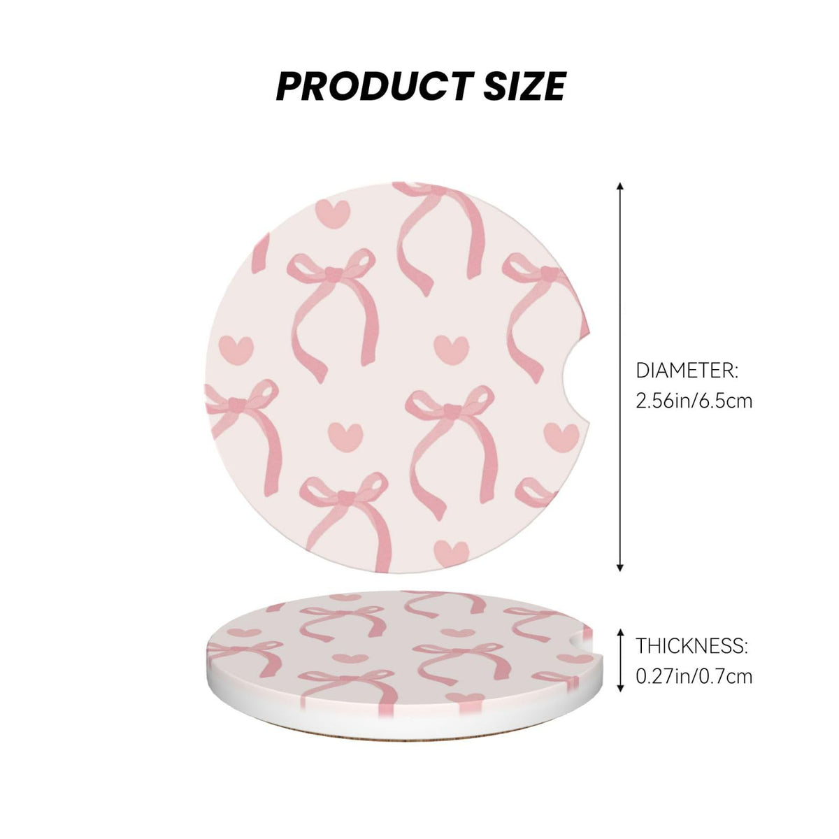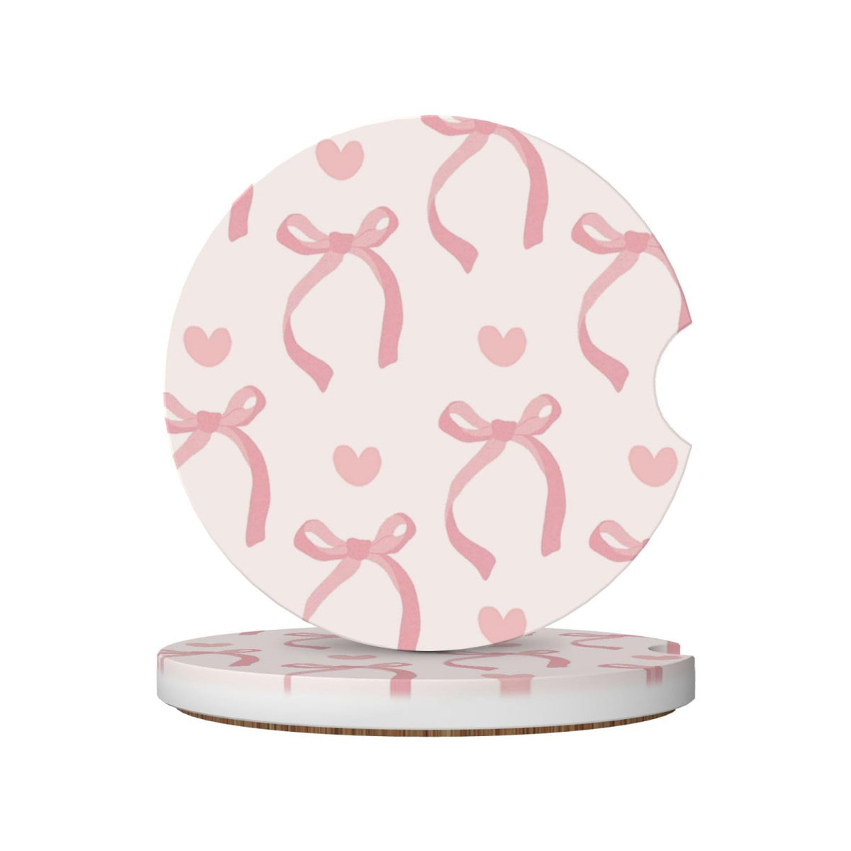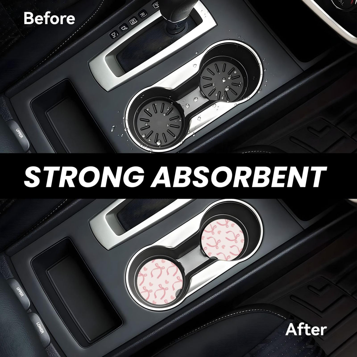 Pink Bow Love Heart Car Cup Holder Coaster 2 Pack Absorbent Ceramic Car Coasters For Cup Holders Car Accessories Interior For Wo