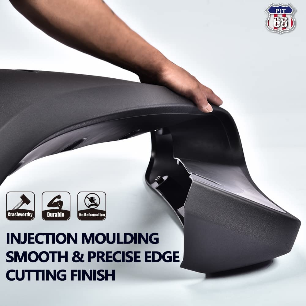 PIT66 Fender Flares, Compatible With 2011-2016 Ford F250 & F350 Super Duty (NOT For Dually Models), Paintable Smooth Matte Black