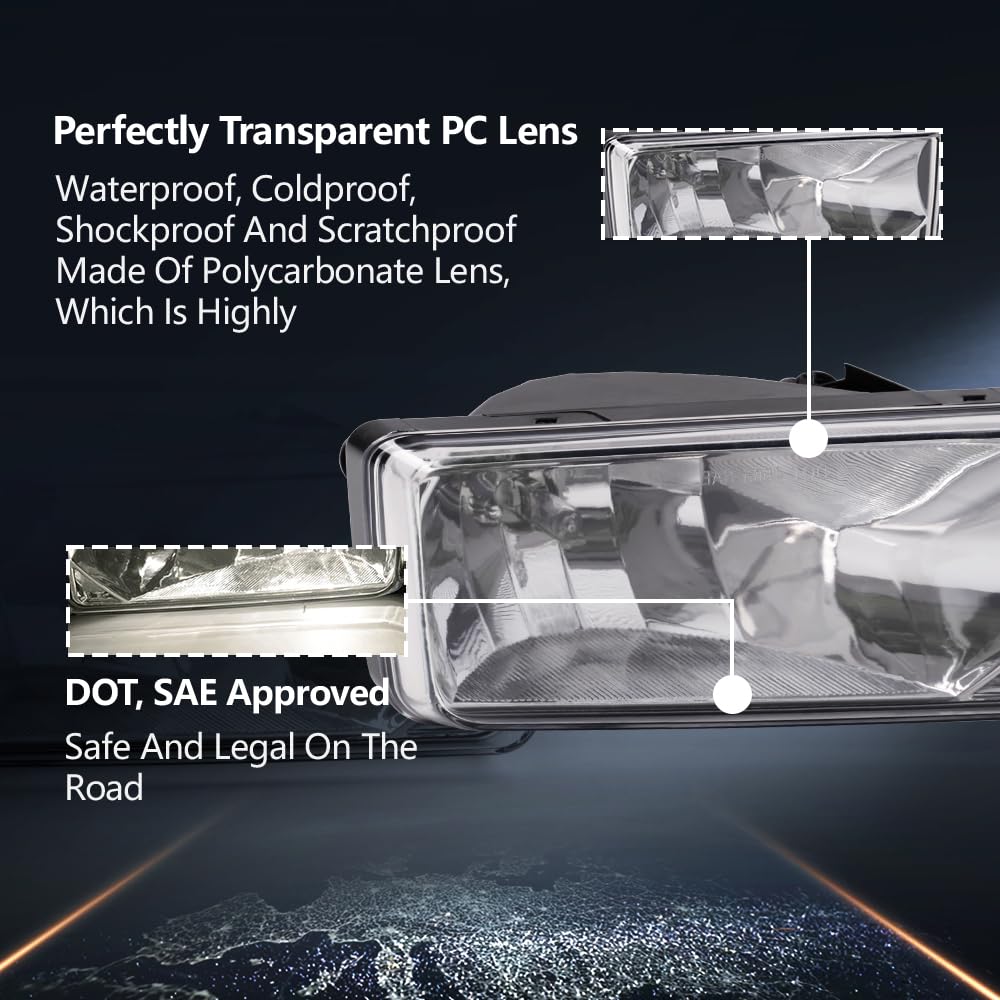 Pit66 Front Bumper Fog Light, Compatible With 2007-2015 Chevy Silverado/2007-2017 Chevy Suburban/2007-2015 Gmc Sierra/2010-2018 Gmc Yukon 2Pcs Front Left & Right Fog Lights Lamps Clear Lens