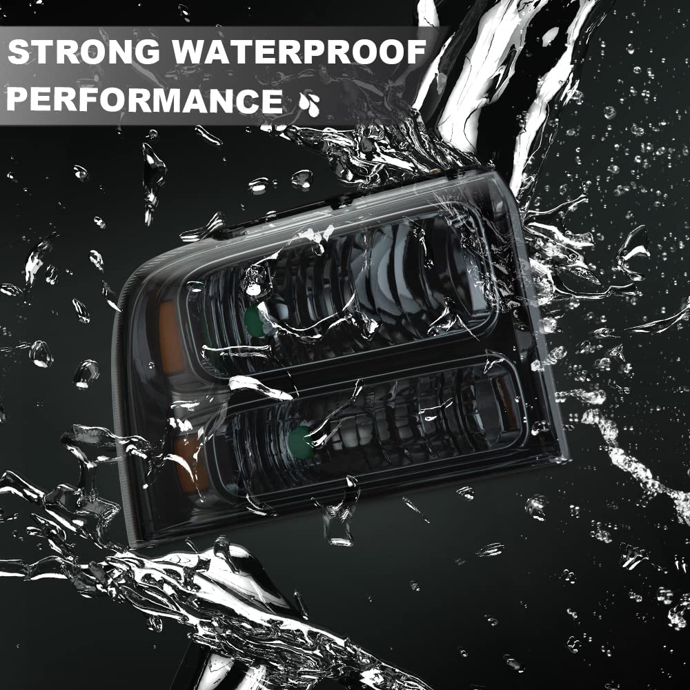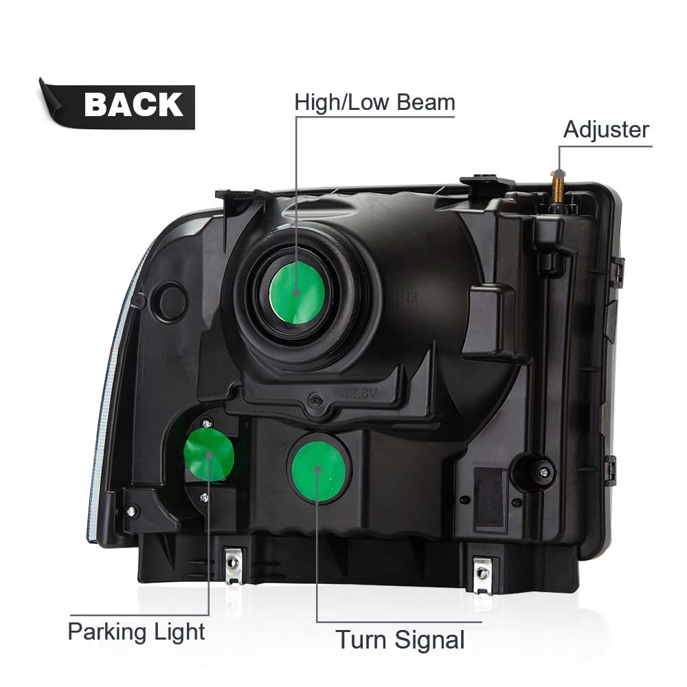 Pit66 Headlights Assembly Compatible With 2005-2007 Ford F250 F350 F450 F550 Super Duty/ 2005 Excursion,(Not Fit Sealed Beam Hea