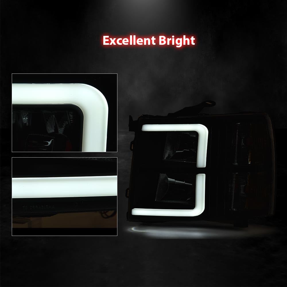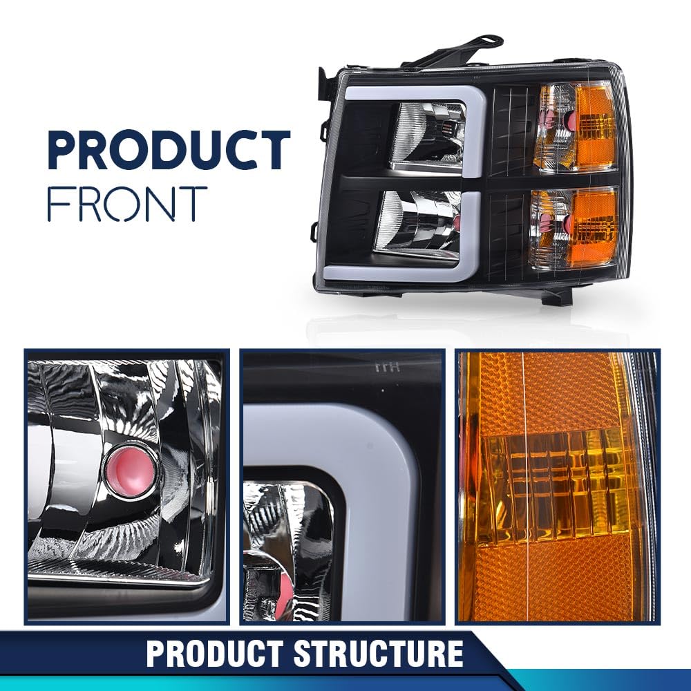 Led Drl Tube Projector Headlights W/O Bulb Clear Lens Black Housing Amber Reflector Compatible With Chevy Silverado 1500 2007-2013/2500Hd 3500Hd 07-14,Not Fit 2007 Old Body Silverado Classic