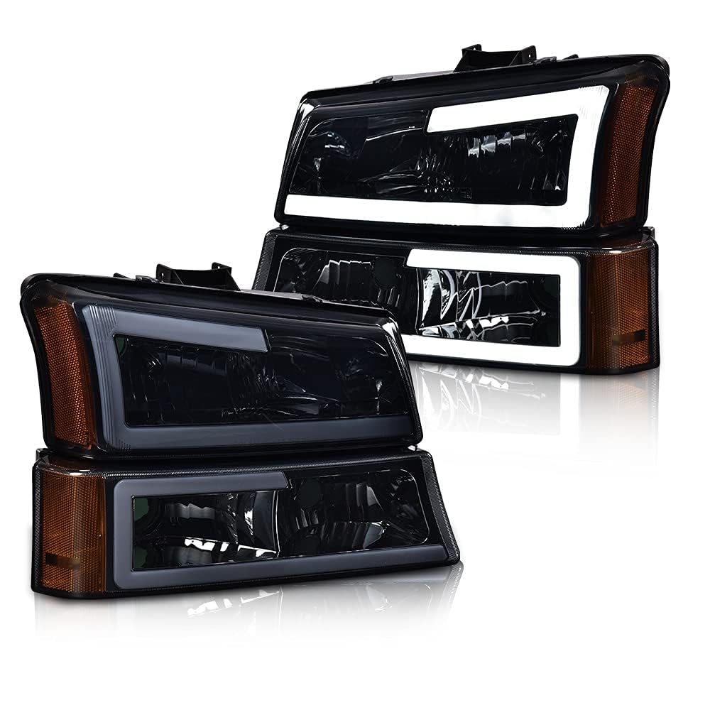 Pit66 Led Headlight Assembly Compatible With 2003-2006 Chevy Silverado Model/Avalanche 1500 2500(Fit No Cladding Only) Smoky Len