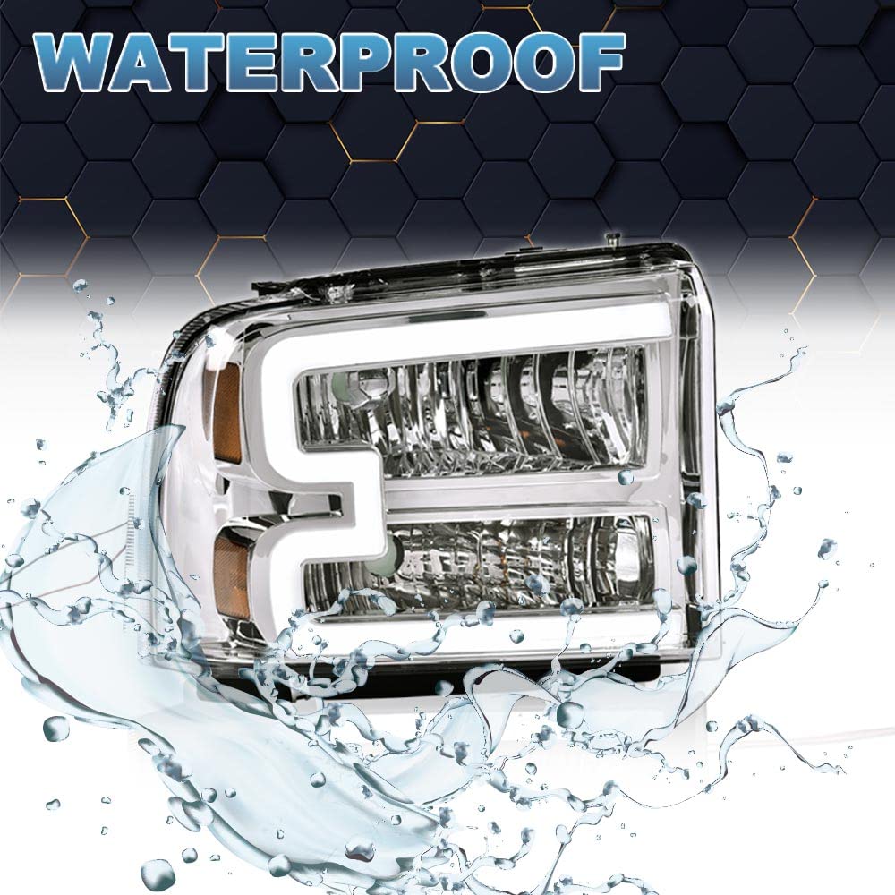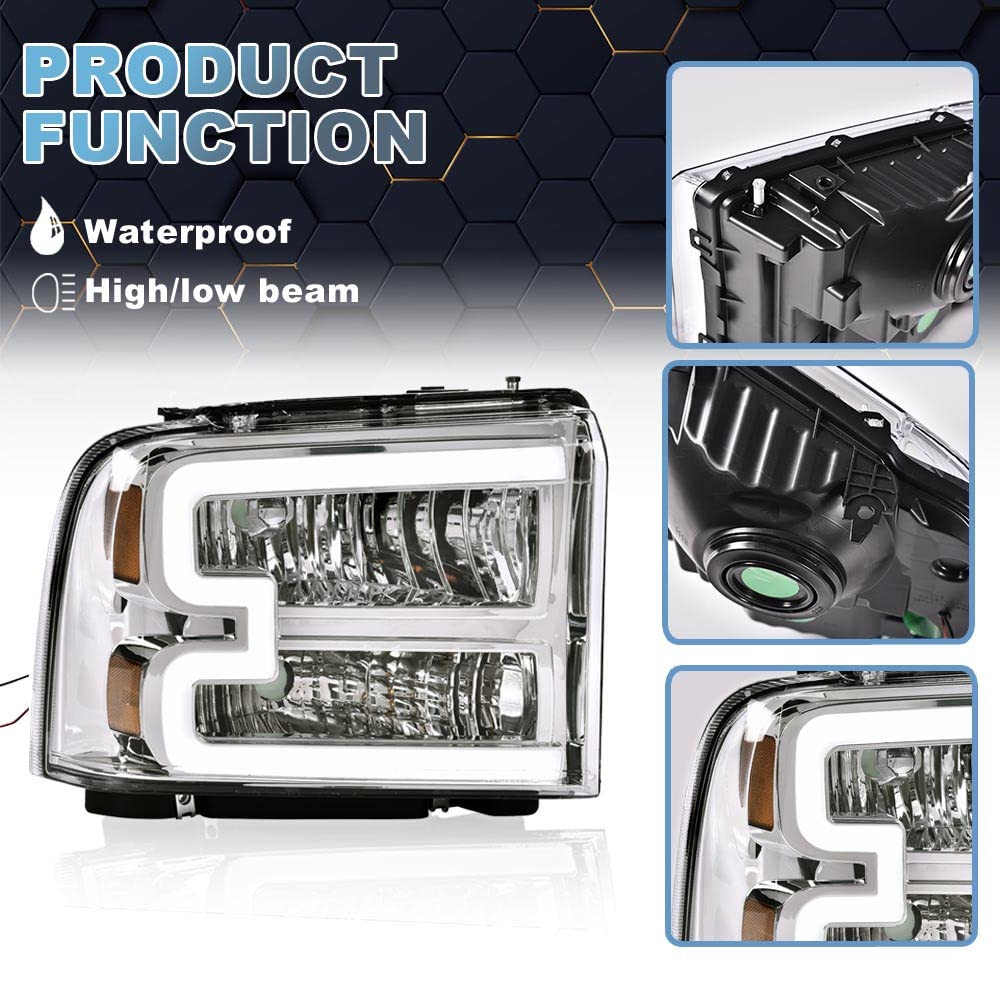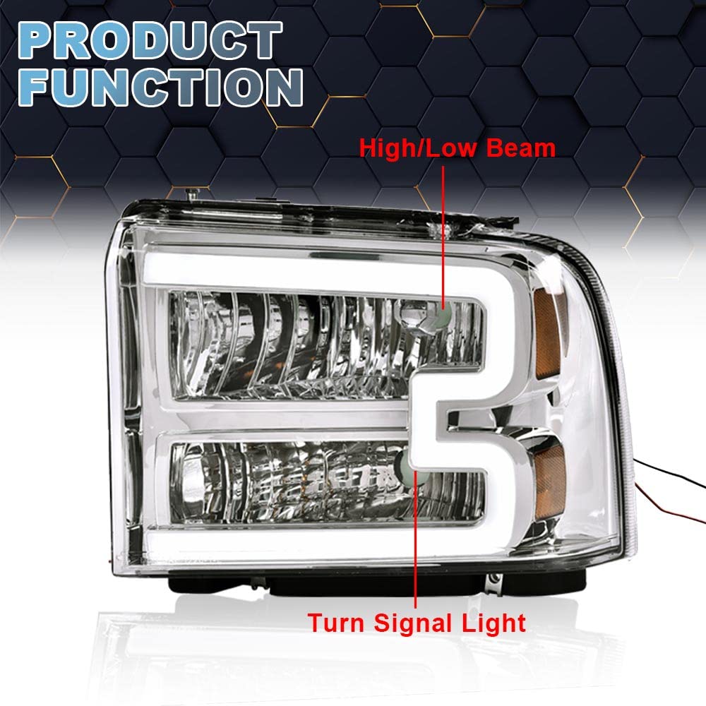 Pit66 Led Headlights, Compatible With 2005-2007 Ford F250 F350 F450 F550 Super Duty/ Fit 2005 Ford Excursion (Not Fit Sealed Beam Headlight Model) Clear Lens Chrome Housing Amber Reflector