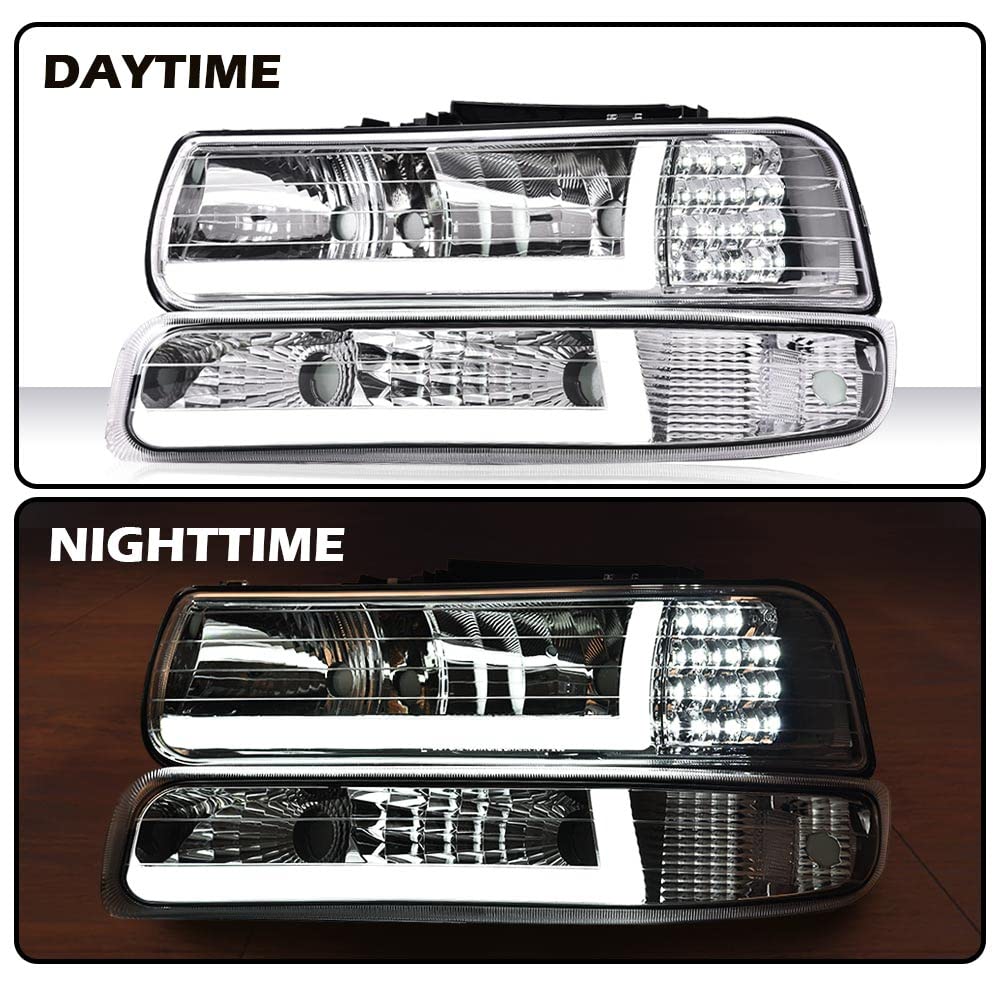 Pit66 Led Headlight Assembly Compatible With 99-02 Chevy Silverado 1500 2500/01-02 Silverado 1500Hd 2500Hd 3500/00-06 Tahoe Subu