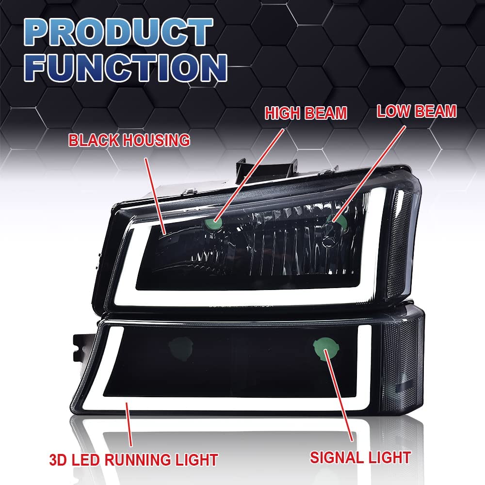 Led Headlight, Compatible With Chevy Silverado 1500 2500 3500 Hd Model 03-06/Fit Avalanche 1500 2500 03-06(Fit No Cladding Only)/Fit Silverado 1500 2500 3500, Headlamp Assembly