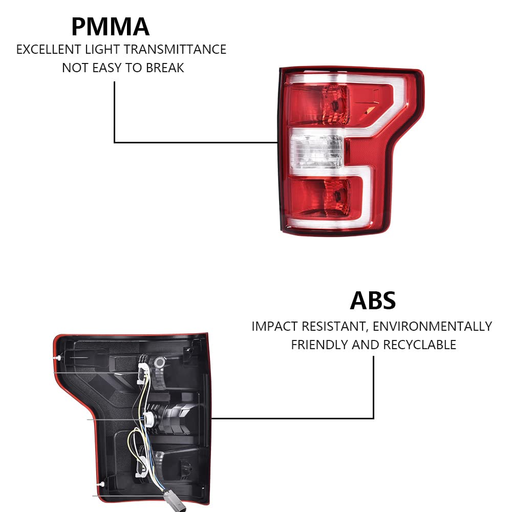 Pit66 Rear Tail Lamp Light Assembly,Compatible With Ford F150 2018 2019 2020 Red Lens Chrome Housing W/Bulbs And Wiring Harness