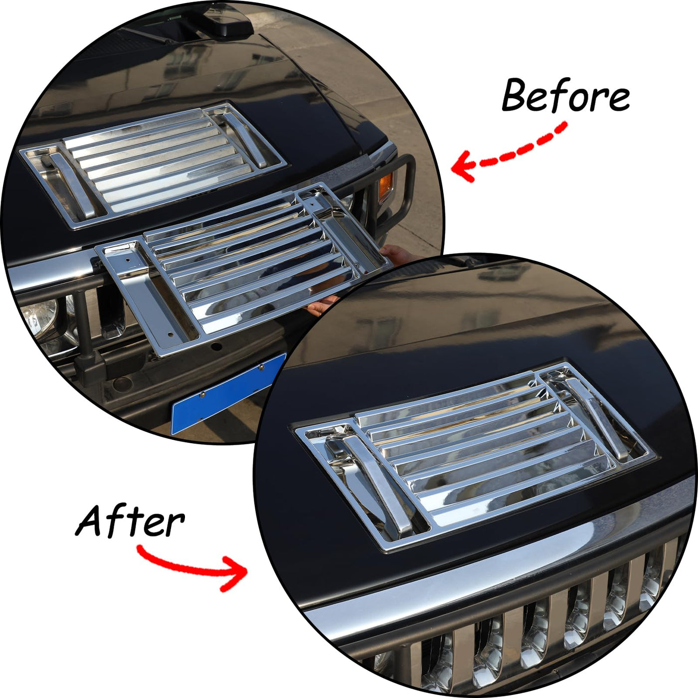 Piugilh Front Hood Deck Vent Panel Grille Hood Trim Cover Fit For Hummer H2 2003-2009 Accessories, Hood Top Trim Cover (Bright)