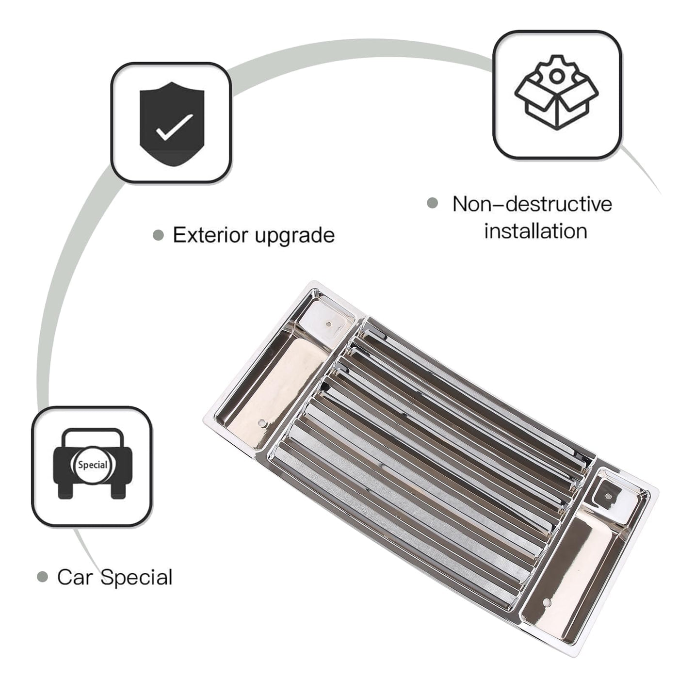 Q: What materials are used in the construction of this hood trim cover?A: The hood trim cover is made from high-quality ABS material, which is lightweight, durable, and colorfast, providing long-lasting use without fading.